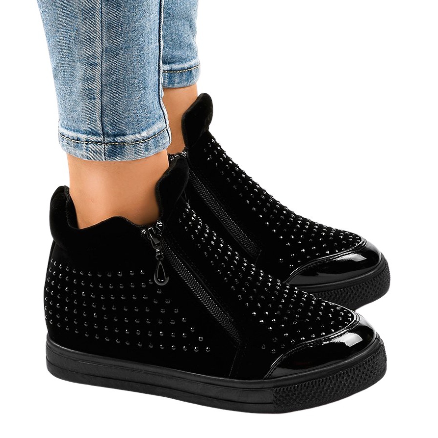 Découvrez les uniques baskets compensées noires R51-1, qui deviendront un élément indissociable de votre garde-robe. Fabriquées dans une matière semblable au daim, ces chaussures élégantes allient confort et élégance. Les détails à la mode sous la forme de clous noirs et de fermetures éclair pratiques sur le devant de la tige ajoutent du caractère et vous permettent de toujours vous démarquer.