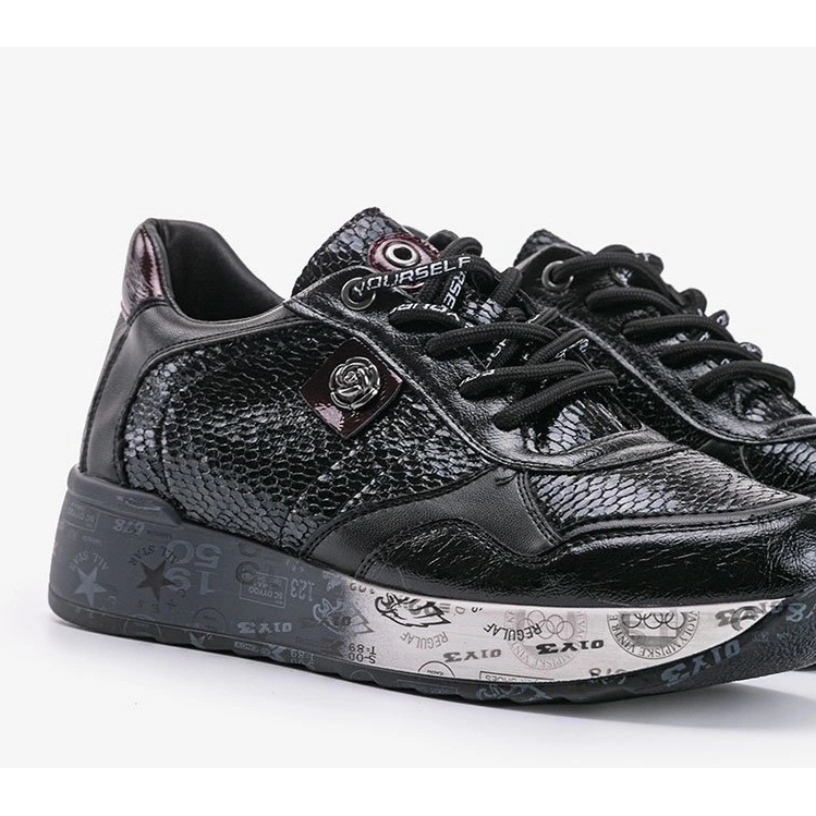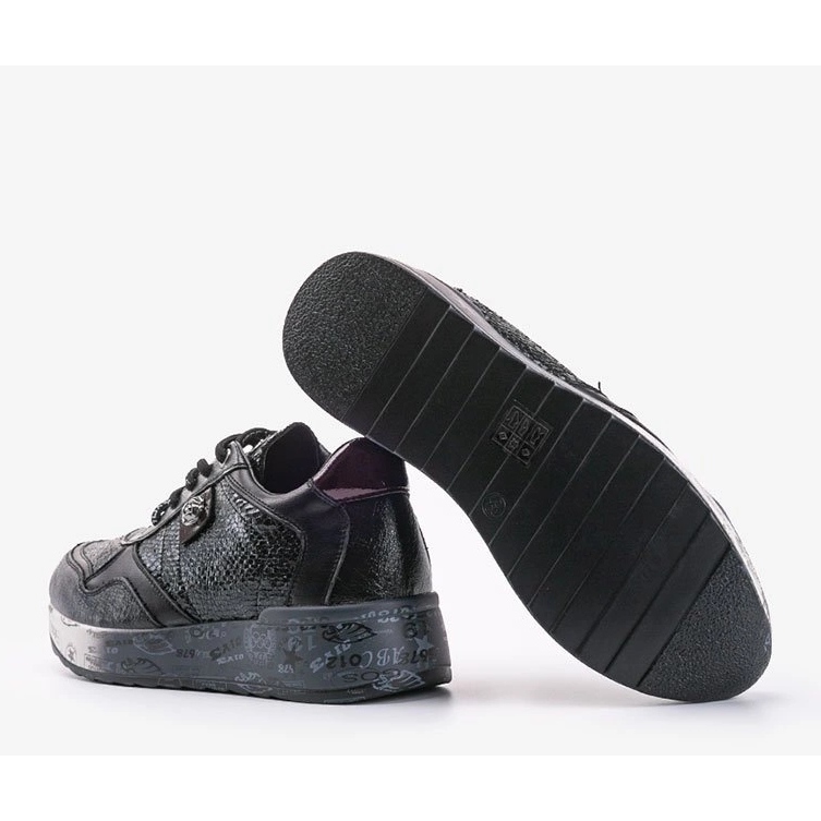 Nous vous présentons les baskets compensées noires d'Ayanna. Ce modèle élégant et tendance se caractérise par une riche décoration de la tige et de la cale. Un élément distinctif sont les lacets décorés de l'inscription "Free Yourself". Les baskets Ayanna sont un véritable succès cette saison !