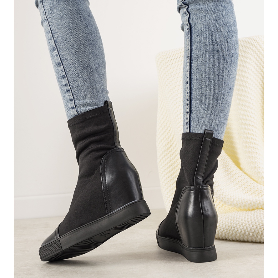 Les baskets Partida se distinguent par une cale cachée de 7 cm de haut, qui souligne subtilement la silhouette, la rendant plus fine. Fabriqué en éco-cuir de haute qualité, il est résistant et facile d'entretien, tandis que le matériau flexible de type chaussette sur les côtés de la tige facilite non seulement l'enfilage, mais garantit également un ajustement parfait au pied.