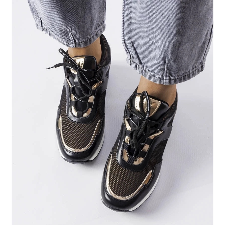 Détails: D/GMR Baskets compensées noires et dorées Vincez le noir