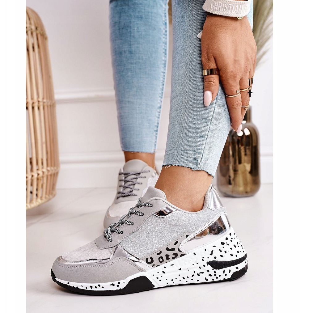 L'intérieur de la chaussure est équipé d'une semelle intérieure en tissu qui assure un confort de port exceptionnel même tout au long de la journée. Une délicate cale de 6 cm de haut allonge non seulement optiquement les jambes, mais ajoute également une silhouette plus fine. Les baskets basses ont un bout rond et une fermeture à lacets classique, ce qui en fait un choix polyvalent pour diverses occasions.