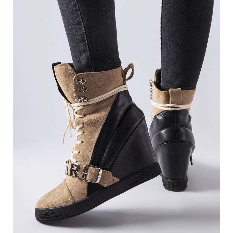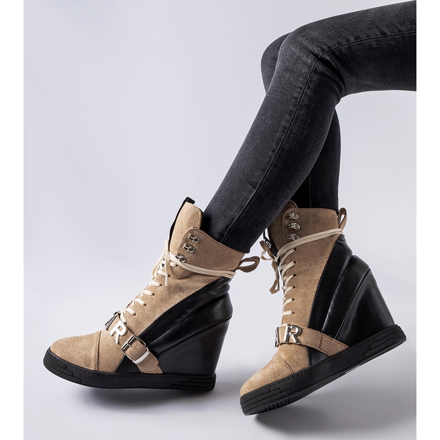 Détails: Baskets compensées Pugliesi marron et noires brun