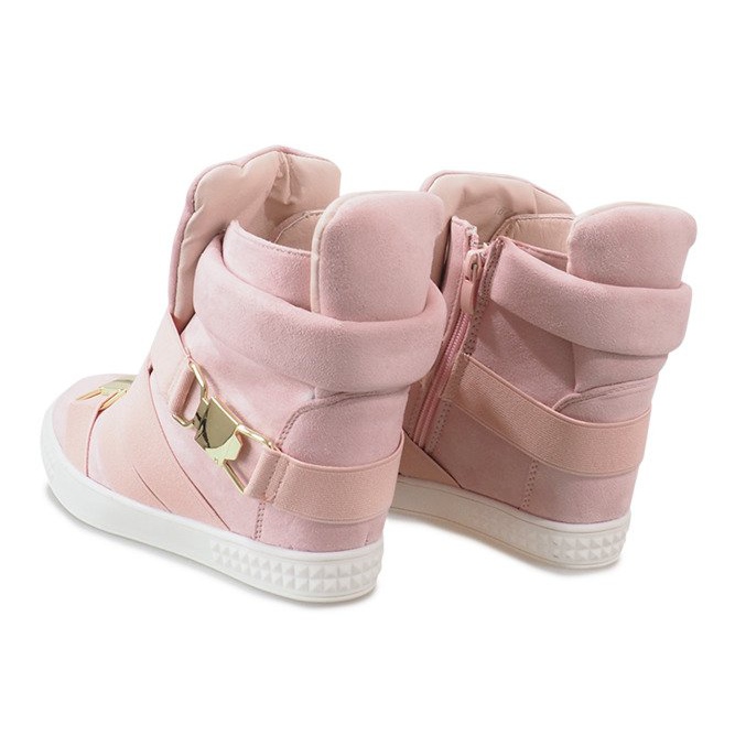 Les baskets compensées roses 1671 sont un choix parfait pour tous les amateurs de style jeune qui souhaitent ajouter un peu de fraîcheur et d'élégance à leur look. Ces tiges hautes, atteignant la cheville, sont non seulement à la mode, mais assurent également un confort de port. Des brides en caoutchouc avec des boucles dorées attrayantes ajoutent du caractère et un style unique aux chaussures.