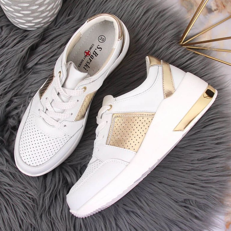 Les baskets compensées S.Barski W OLI162B en blanc sont un choix parfait pour toute femme active qui valorise le style et le confort au quotidien. Ces chaussures élégantes, fabriquées en cuir naturel de haute qualité, sont parfaites pour de nombreuses situations quotidiennes, tout en soulignant le caractère tendance de n'importe quel style.