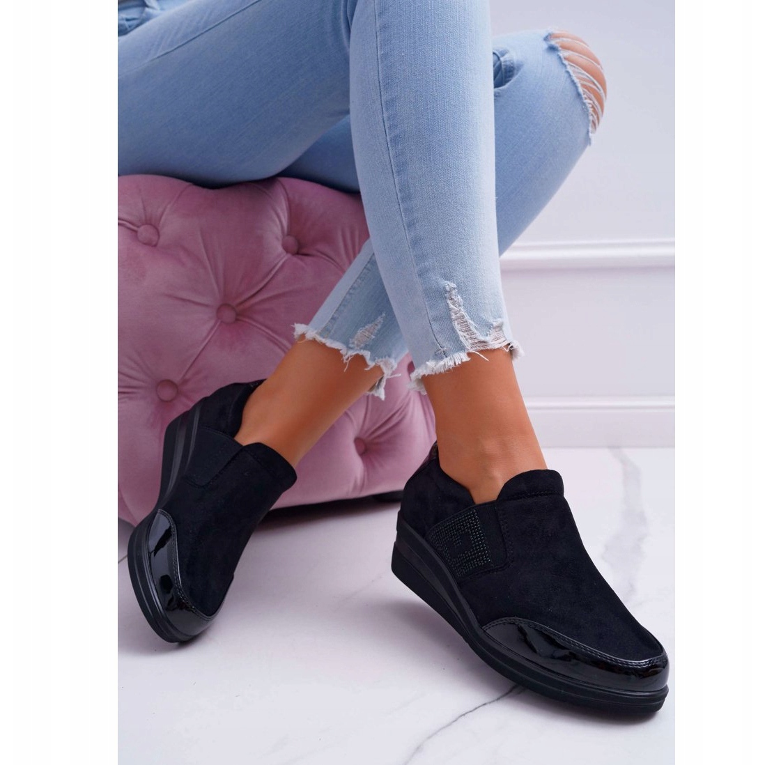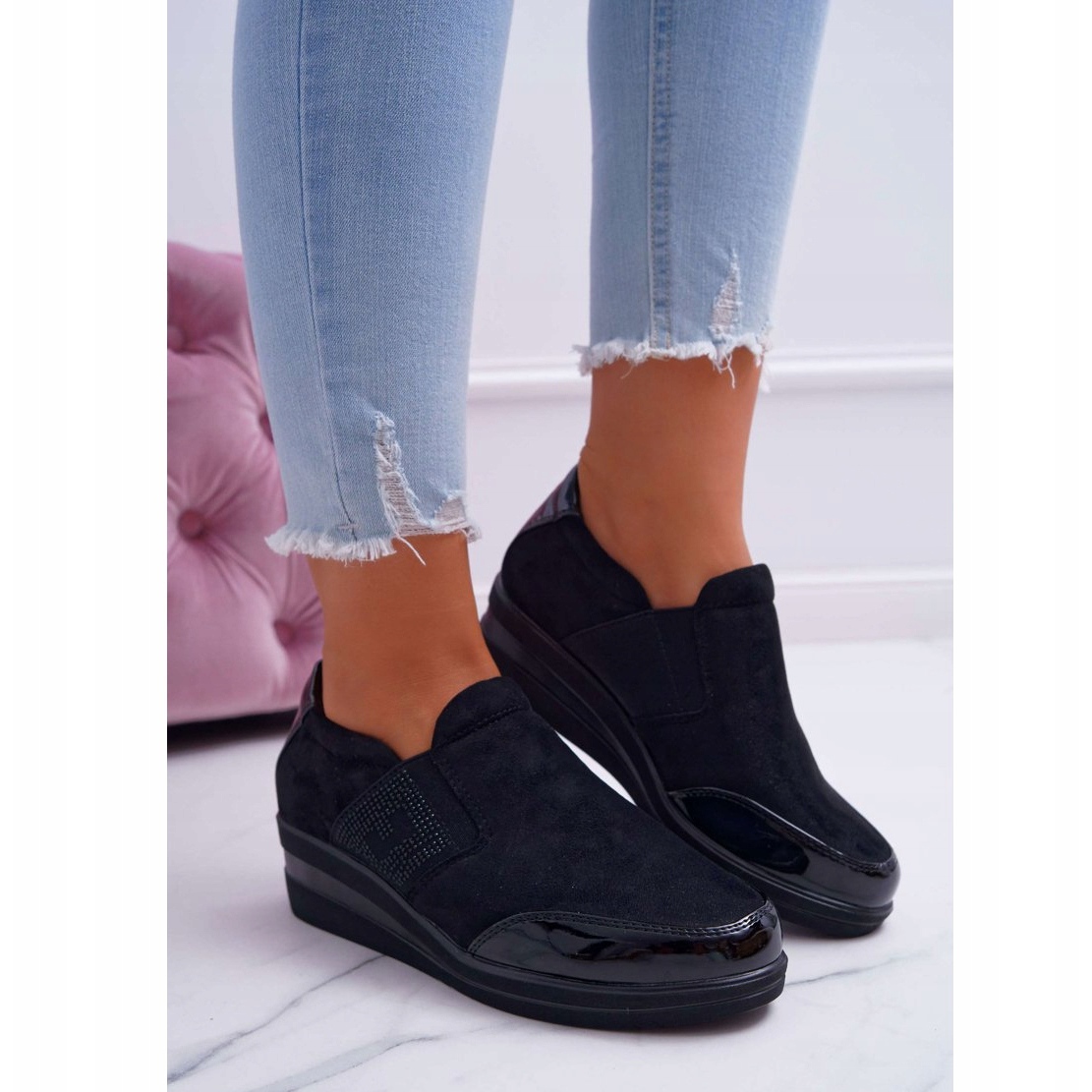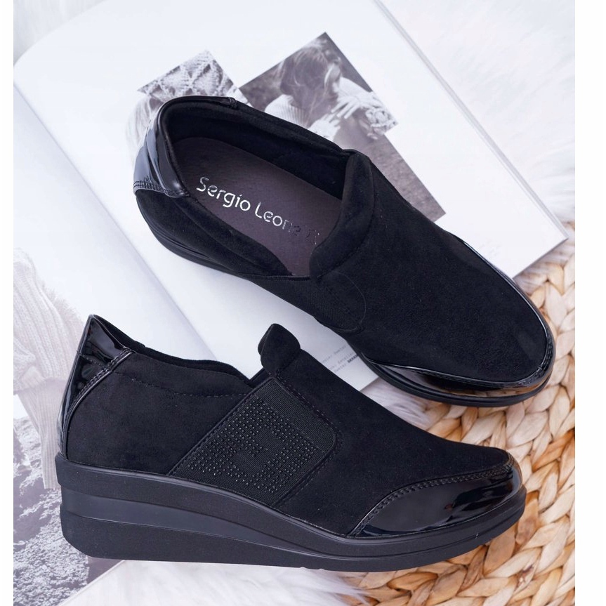 Les baskets compensées Sergio Leone PB225 sont un choix parfait pour les femmes qui apprécient le style et le confort. Fabriqués à partir d'une combinaison de suède écologique et de cuir écologique verni, ils sont extrêmement élégants et modernes. Les chaussures noires se marient bien avec différents styles, du plus décontracté au plus élégant.