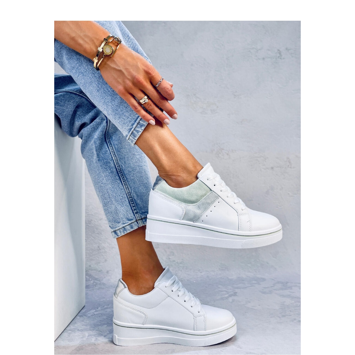 Découvrez notre dernière offre : des baskets compensées dans des tons blancs et verts électrisants ! Ces chaussures de sport uniques complètent non seulement votre style sportif, mais y ajoutent également de l'originalité grâce aux inserts contrastés en daim et métallisés.