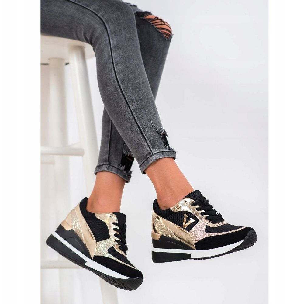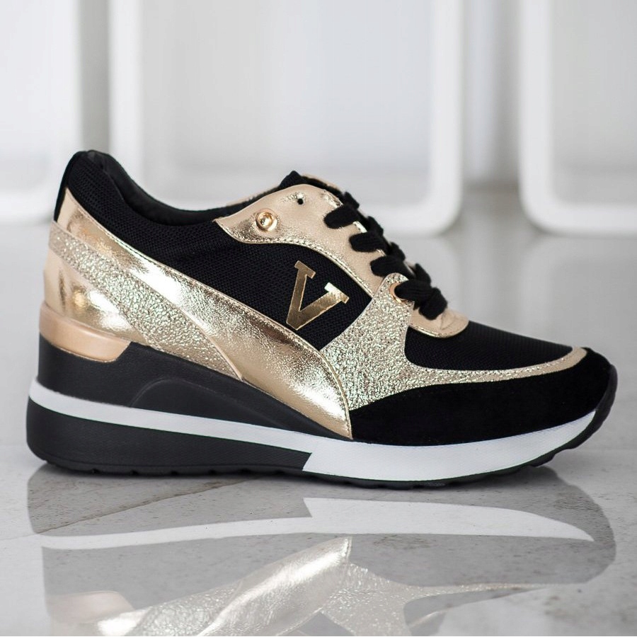 Les baskets compensées Vinceza dans une combinaison tendance de noir et d'or sont un choix idéal pour les femmes qui apprécient le confort et le style. Fabriquées en cuir écologique, ces chaussures de sport classiques allient design moderne et fonctionnalité, ce qui les rend parfaites pour un style quotidien.