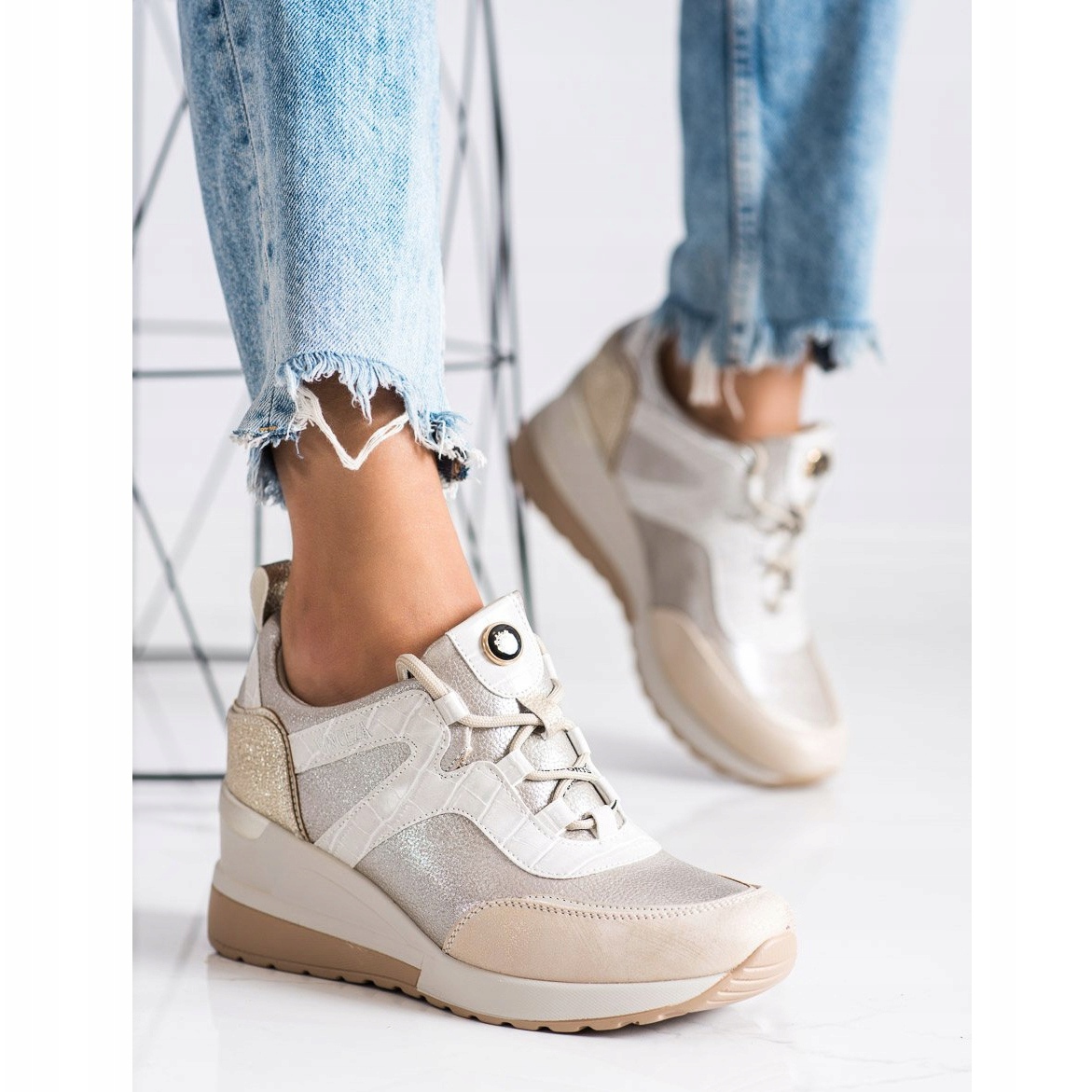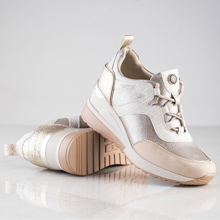 Les baskets compensées VINCEZA beiges sont un choix parfait pour les femmes qui apprécient le style et le confort. Parfaits pour un style quotidien, ils combinent un design sportif et tendance, ce qui les rend adaptés à diverses occasions - des promenades en ville aux réunions entre amis.