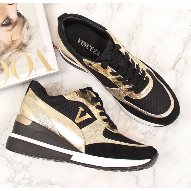 Les baskets compensées Vinceza W WM747B sont des chaussures qui s'adaptent parfaitement aux dernières tendances de la mode. Ce modèle en noir et or attire l'attention et ajoute de l'élégance à n'importe quel style. Créées par la célèbre marque Potocki, ces baskets allient parfaitement confort et style.