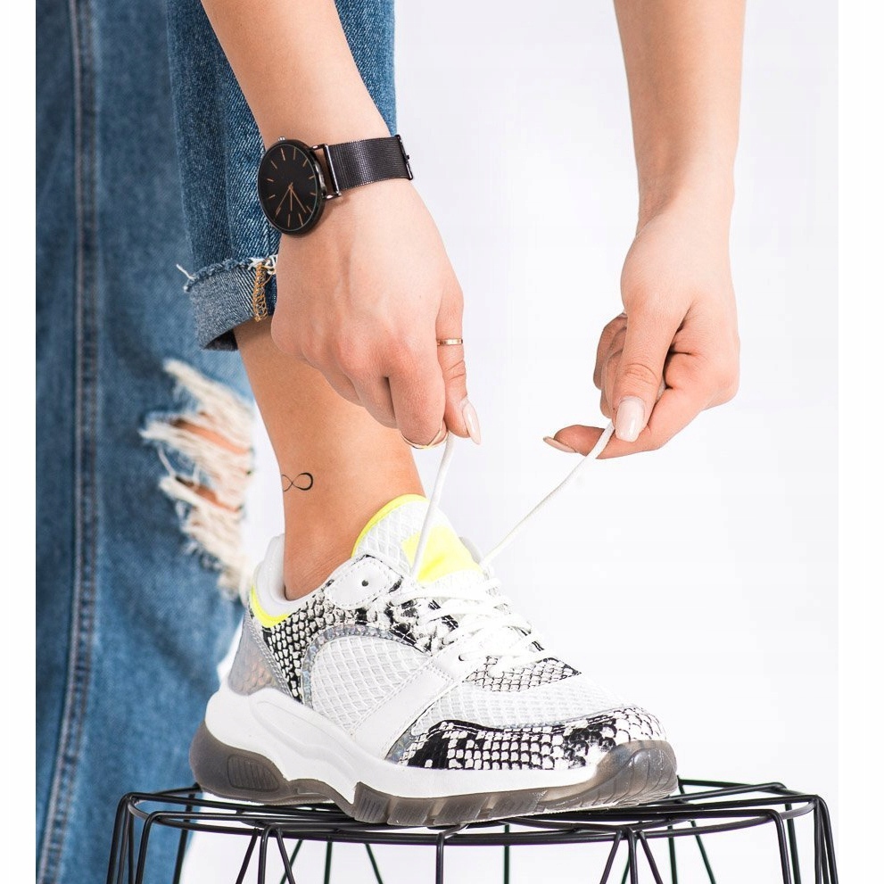 Découvrez les baskets confortables de Kylie dans une élégante couleur blanche avec un motif imprimé serpent tendance ! Ces chaussures de sport ont été créées pour les femmes actives qui apprécient le confort et le style.