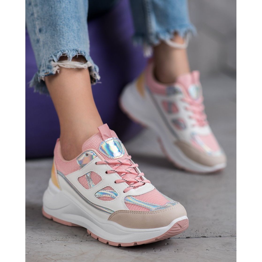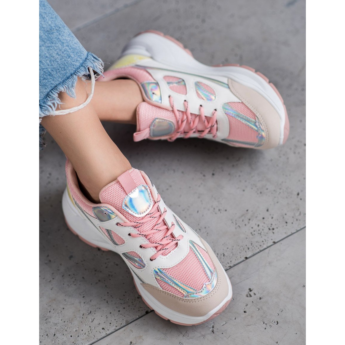 SHELOVET SHELOVET Baskets confortables avec maille blanche rose multicolore