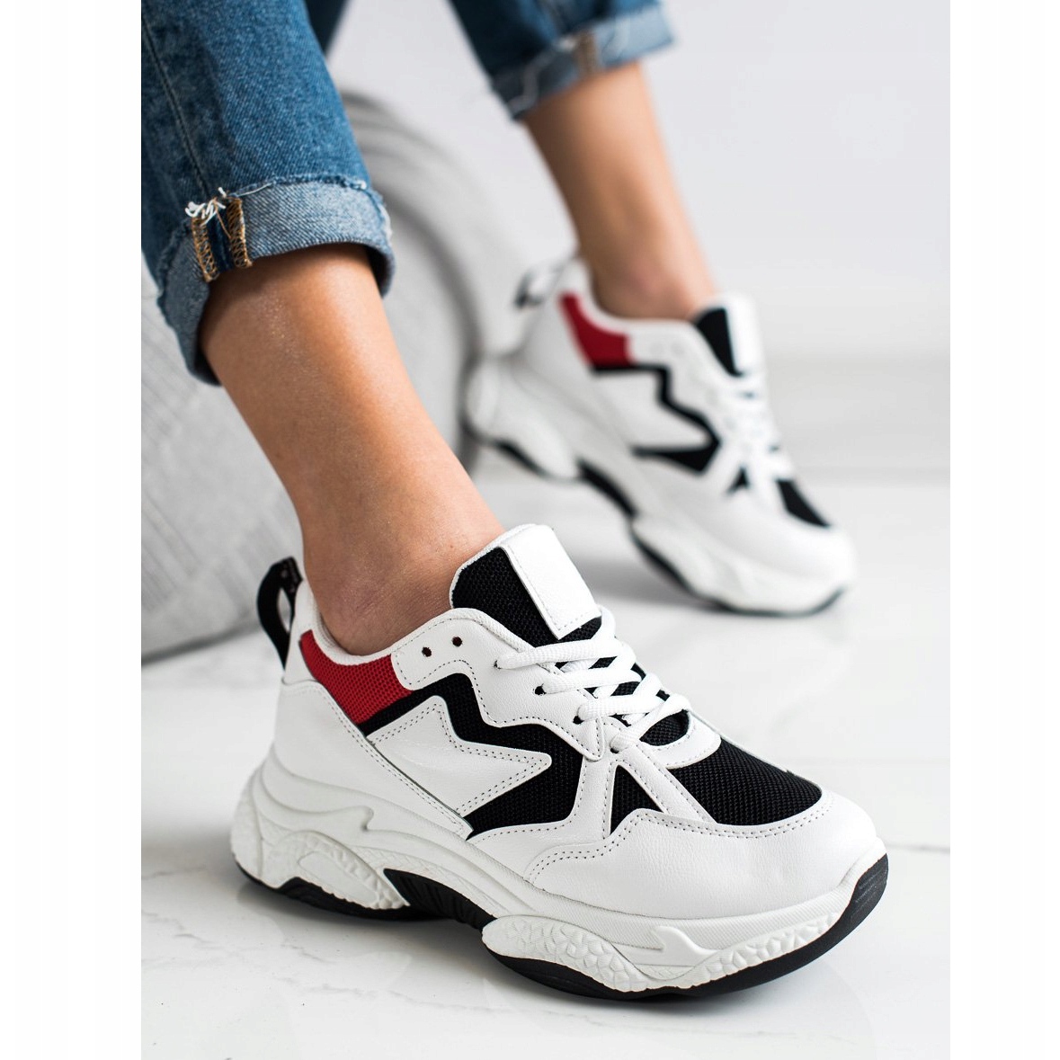 Les confortables baskets blanches multicolores de la marque Fashion sont la solution parfaite pour les femmes qui apprécient à la fois le confort et un look à la mode au quotidien. Ces baskets blanches se distinguent non seulement par leur aspect esthétique, mais aussi par leur fonctionnalité. Fabriqués en cuir écologique de haute qualité, ils assurent durabilité et facilité d'entretien.