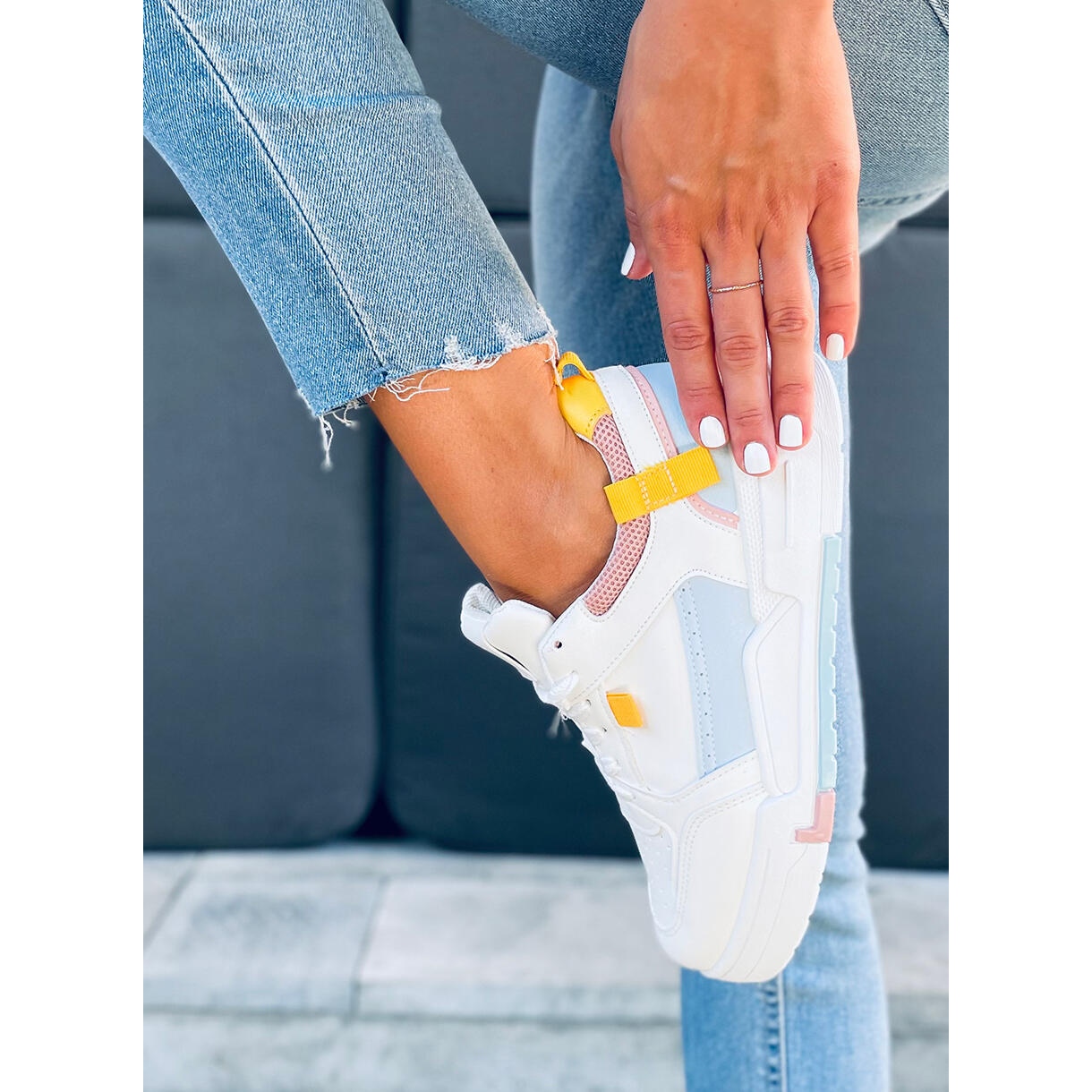 Les couleurs Blanc/Bleu sont accrocheuses et parfaitement en phase avec les dernières tendances, de sorte que chaque femme se sentira certainement spéciale. Grâce à leur motif lisse, ils sont faciles à combiner avec une variété de tenues, du style sportif aux tenues décontractées du quotidien.
