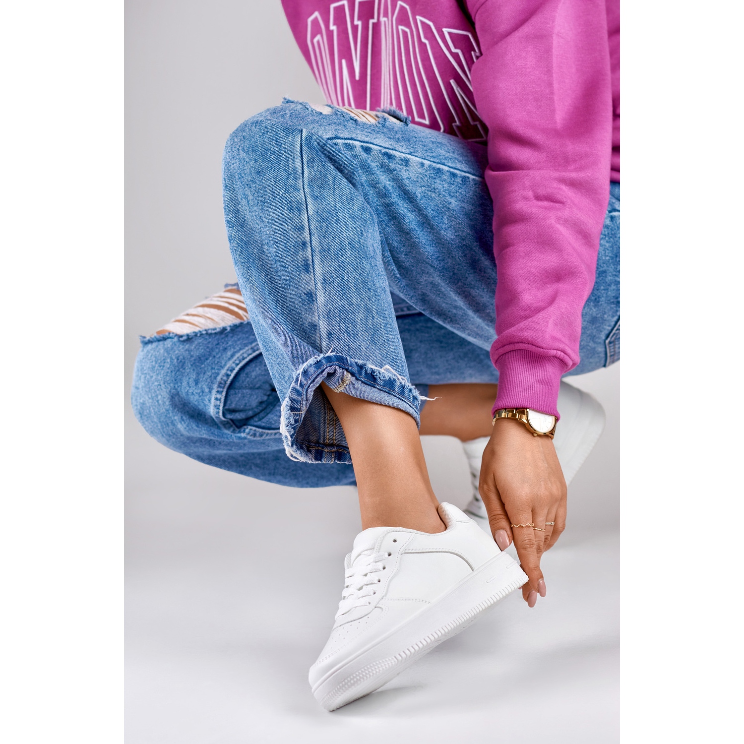 Les baskets universelles et minimalistes de la collection Keeshoes, qui fonctionneront dans les stylisations de tous les jours pour le printemps et l'été. Une tige en cuir écologique blanche lisse et une semelle blanche et légère forment un look intemporel et propre. La plate-forme de 3 cm de haut ajoute une élévation subtile, en maintenant le confort du port. Idéal pour les personnes à la recherche de chaussures de sport simples et élégantes pour les stylisations urbaines.