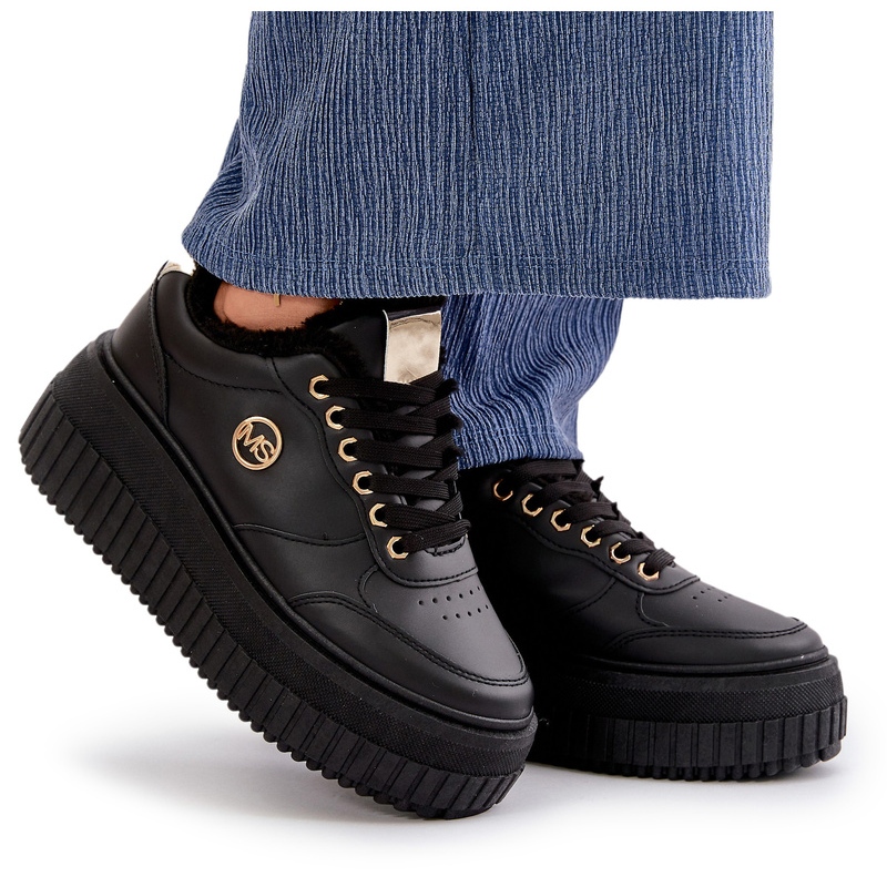 Détails: Baskets de sport isolées pour femmes avec semelle épaisse, noir Ardiela le noir