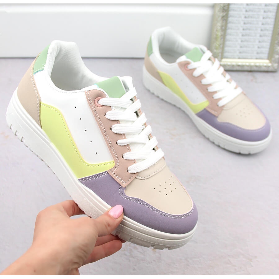 Ces baskets colorées étaient en cuir écologique, ce qui les rend non seulement élégantes, mais aussi respectueuses de l'environnement. Grâce à la fixation flexible aux lacets, ils s'adapteront à chaque pied, garantissant le confort toute la journée. L'insert de doublure et de tissu assure une ventilation et un confort optimaux, et le nez rond ajoute la légèreté et la liberté.