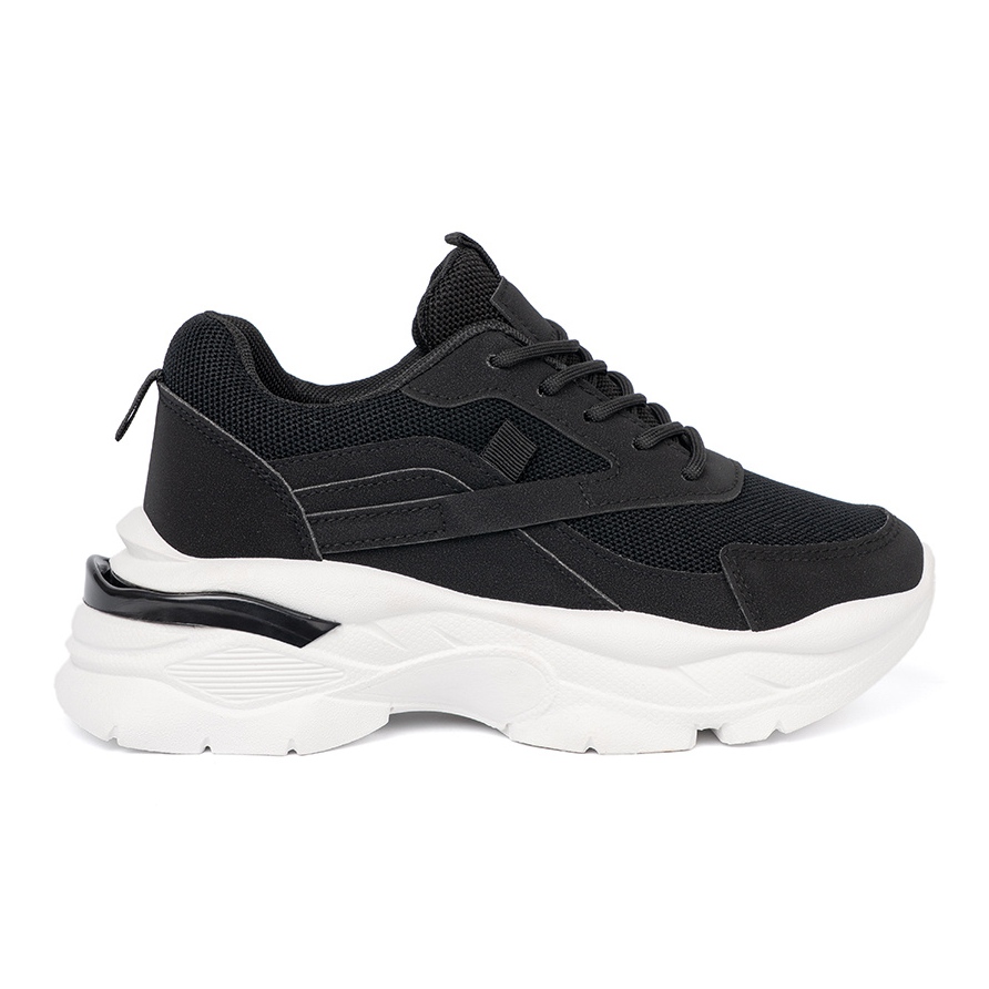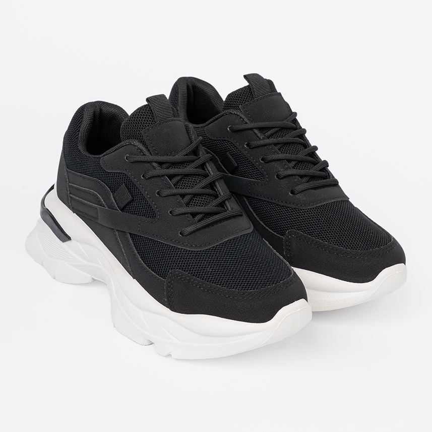 Détails: Shelvt Baskets de sport noir sur une semelle blanche épaisse le noir