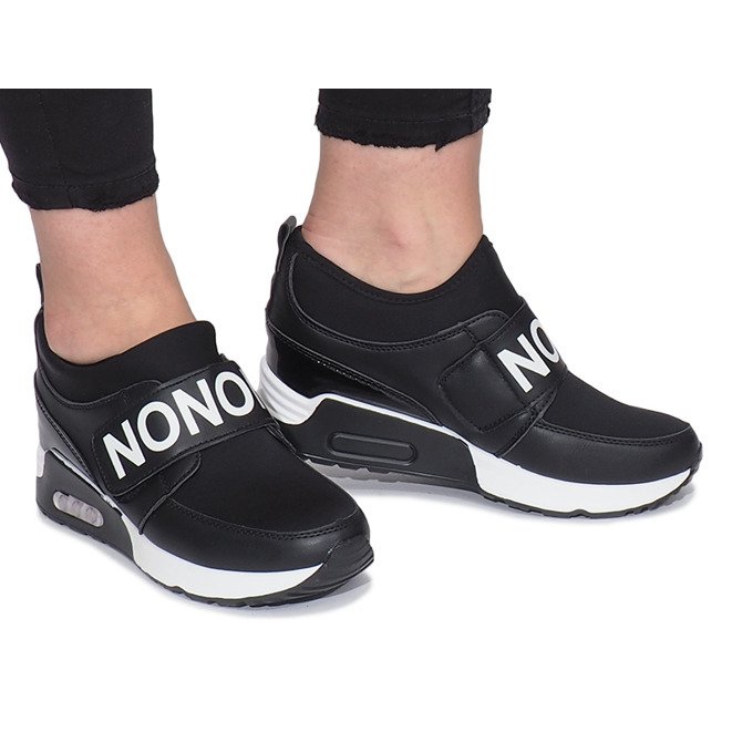 Les baskets se distinguent par des inscriptions blanches accrocheuses qui leur donnent du caractère et en font un complément parfait aux styles sportifs et quotidiens. La semelle « air » douce et blanche assure un confort de port exceptionnel, et la cale de 6 cm de hauteur ajoute une élégance subtile.