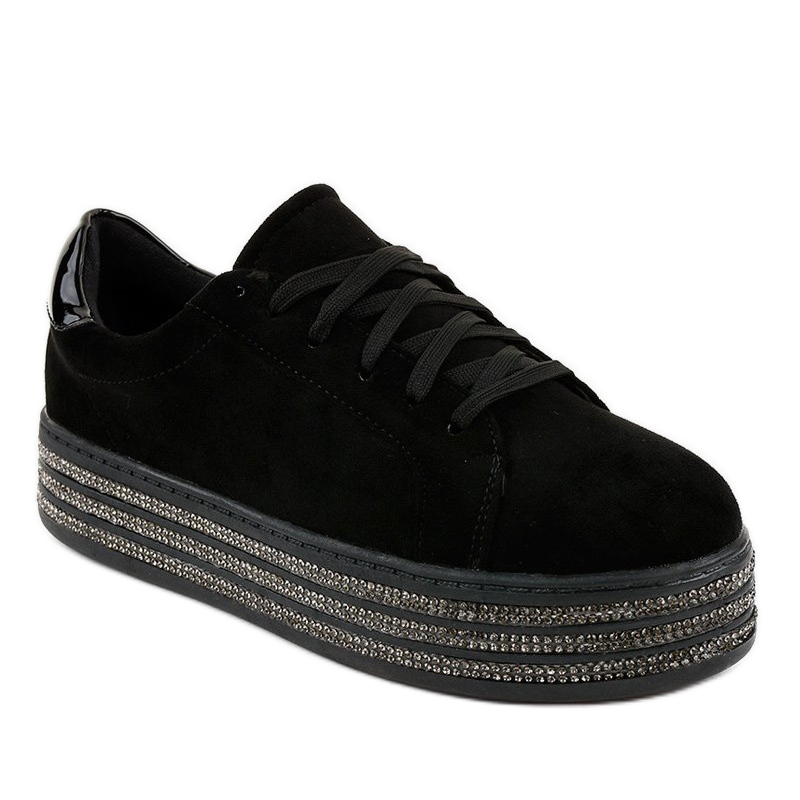 Les couleurs des chaussures sont classiques - le noir profond permet aux baskets de s'adapter à presque tous les styles, offrant un look à la fois élégant et décontracté. Un avantage supplémentaire de ces baskets réside dans les strass, qui non seulement leur donnent un look unique, mais soulignent également le caractère individuel de la personne qui les porte.