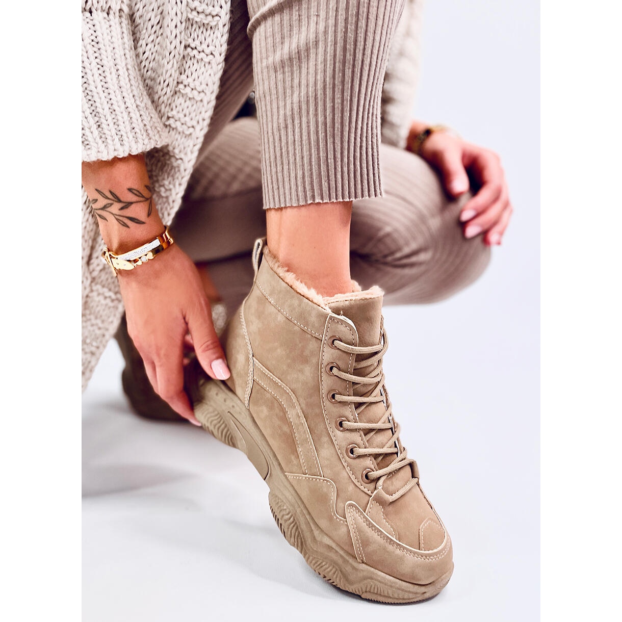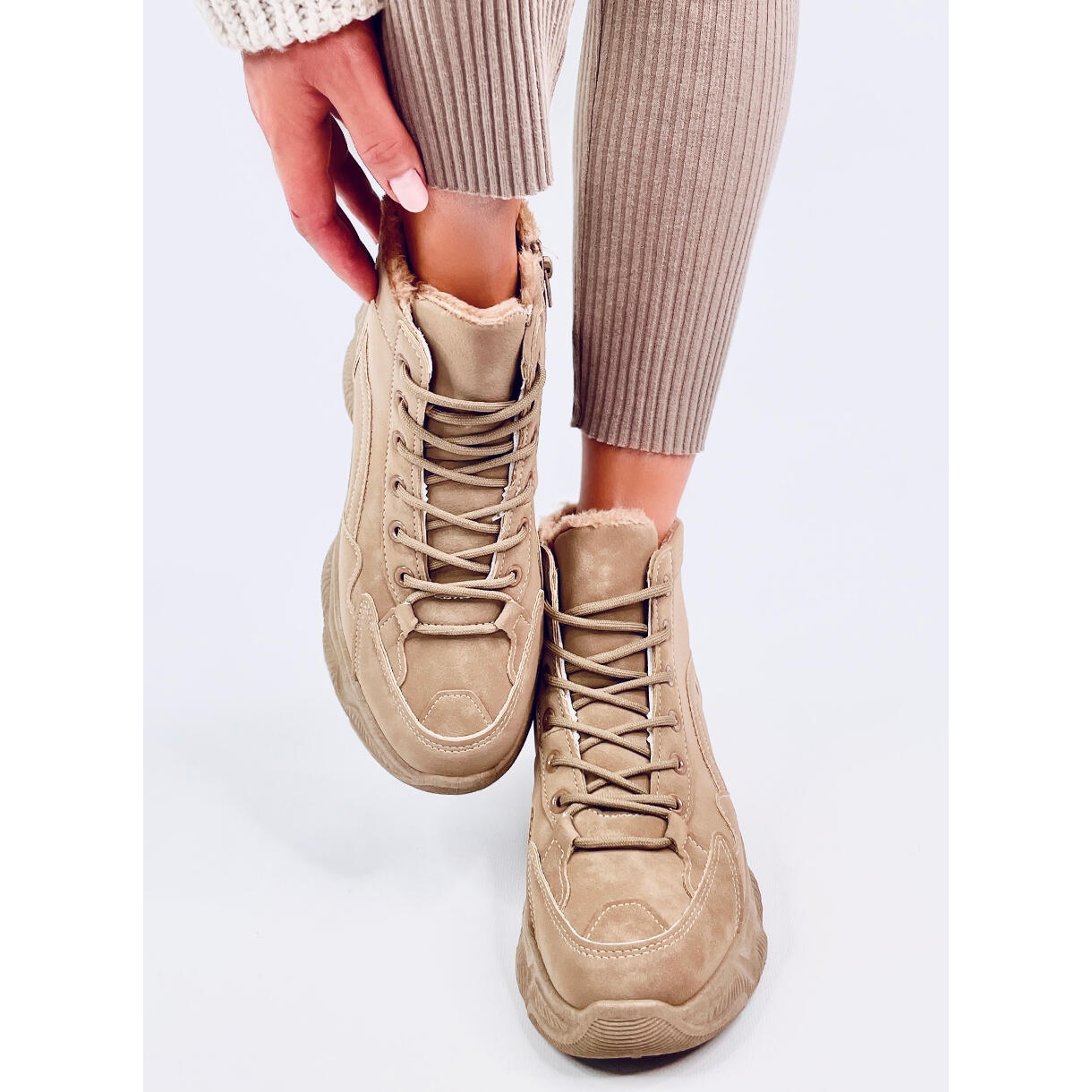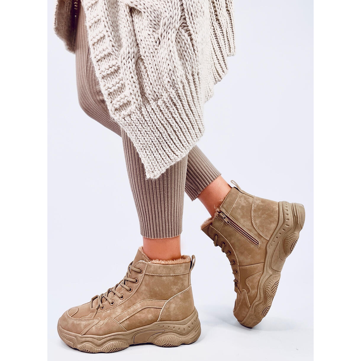 Détails: Baskets d'hiver isolées Elius Khaki beige