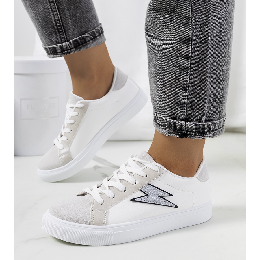 La tige des baskets est en cuir écologique, ornée d'un subtil motif façon crocodile, qui leur confère un caractère unique. Les couleurs - blanc avec un peu d'argent et de gris - permettent à ces chaussures de s'adapter parfaitement aux tenues décontractées et plus élégantes.