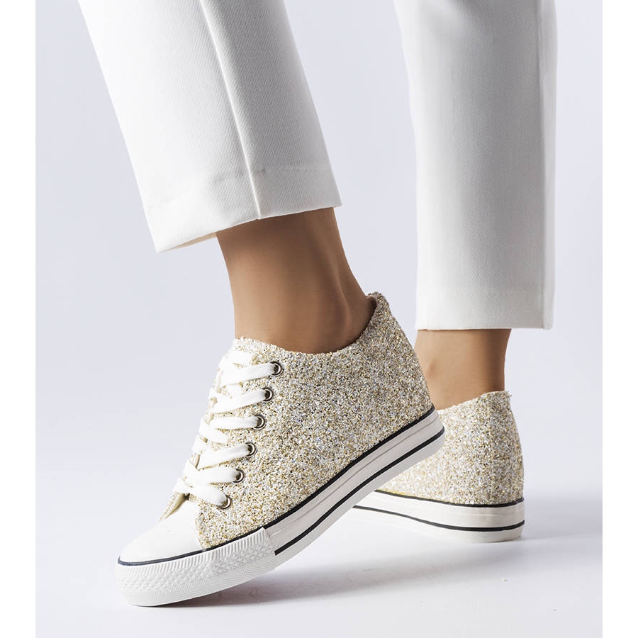 Détails: Baskets dorées à semelle compensée basse de chez Garceau