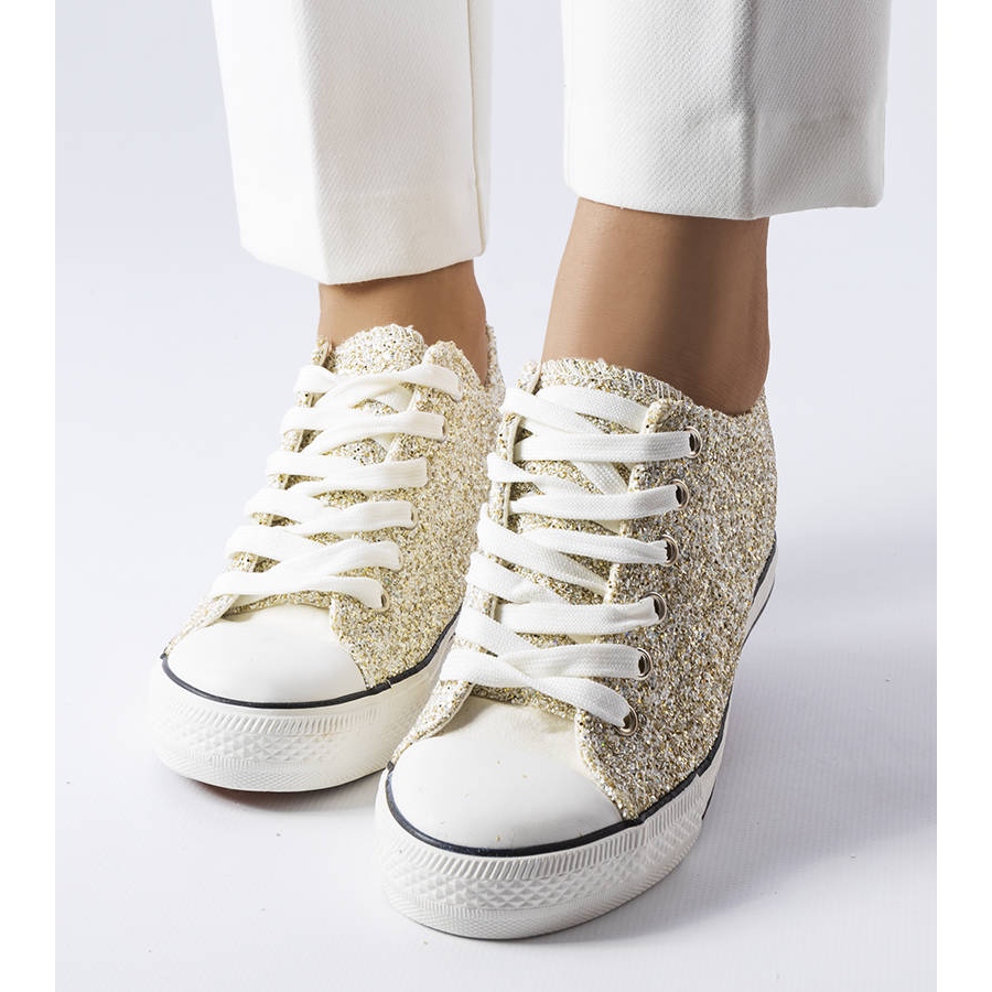 Détails: Baskets dorées à semelle compensée basse de chez Garceau d'or
