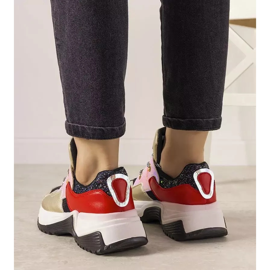 Les baskets Gold Spring à semelle haute sont le choix parfait pour toutes les femmes qui souhaitent allier confort et style extraordinaire. Ce modèle se distingue par une superbe couleur dorée et noire élégante, ce qui en fait un élément unique d'une garde-robe sportive. Ces baskets, grâce à la bande élastique cousue sous la languette, s'adaptent parfaitement au pied, assurant un confort tout au long de la journée.