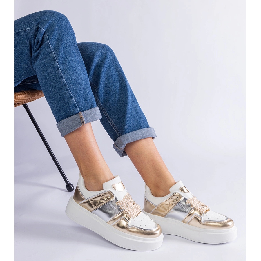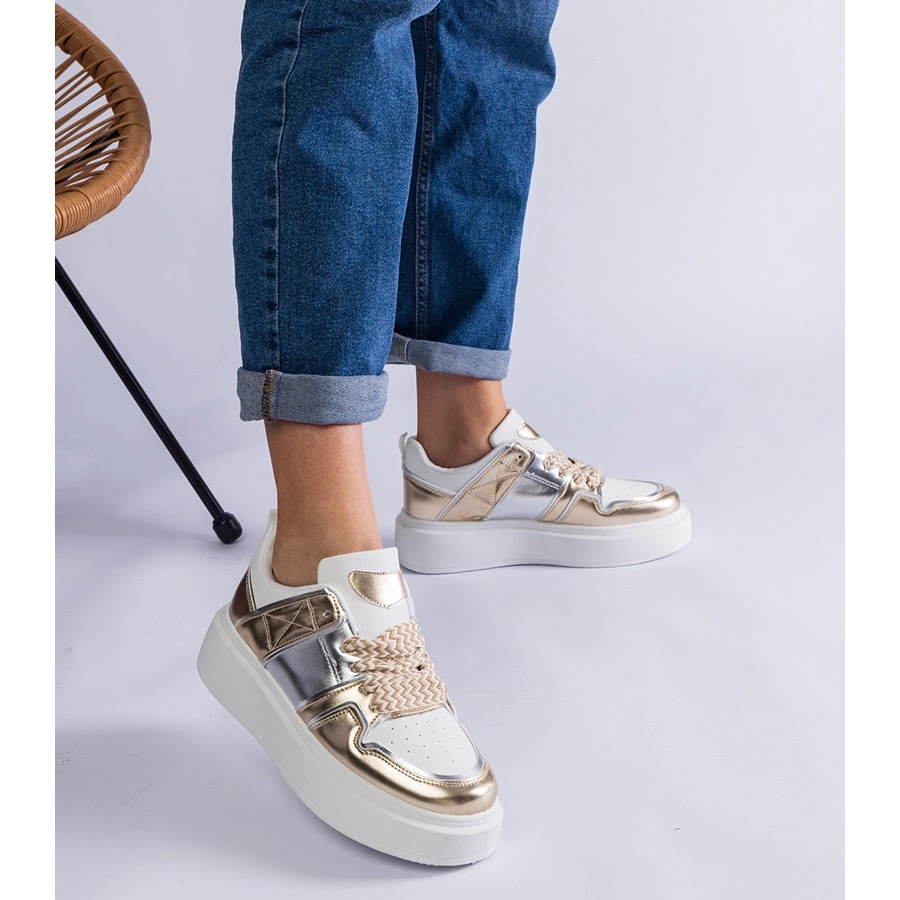 Nous vous présentons des baskets dorées avec des inserts argentés de la marque Inna - un choix idéal pour les femmes qui apprécient la combinaison de style et de confort. Le modèle WX-125 se distingue par une finition dorée métallique tendance, qui attirera certainement l'attention et ajoutera du caractère à n'importe quel style.
