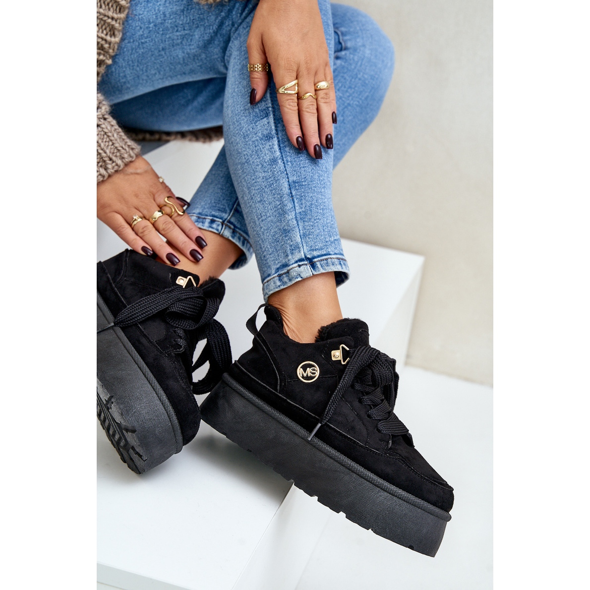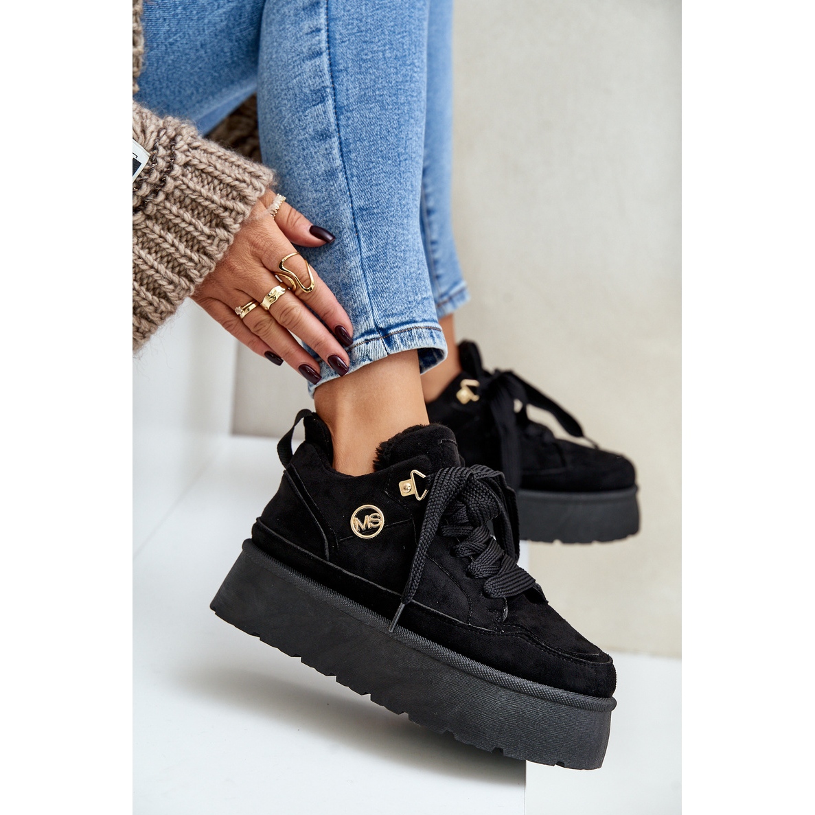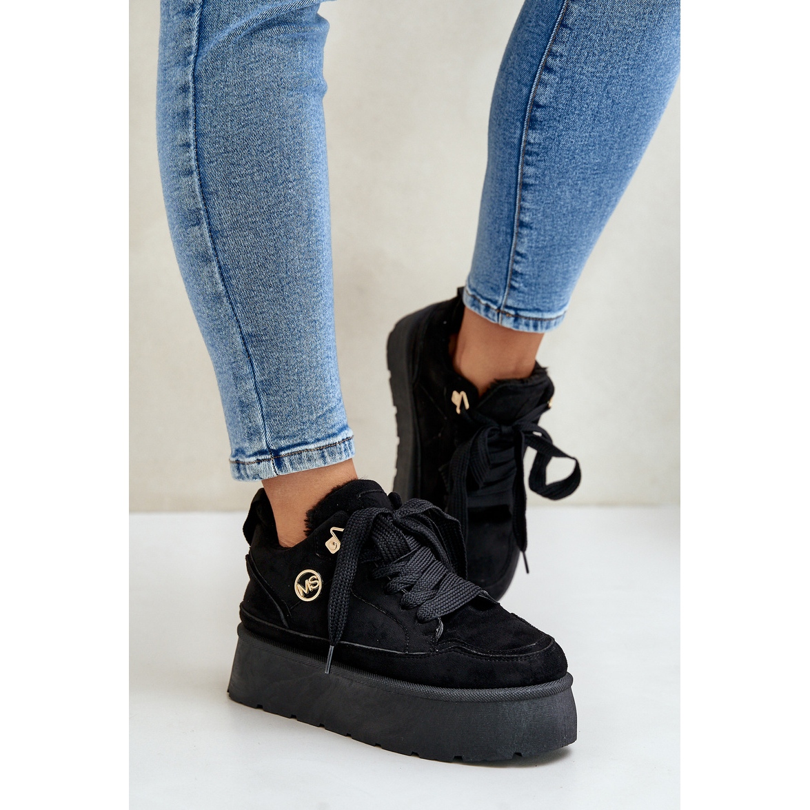 Découvrez le dernier succès de la saison - des baskets féminines isolées sur la plate-forme Vlarisea dans une couleur noire élégante. Fabriqués en daim eco de haute qualité, ces chaussures sont une combinaison parfaite de style et de confort, parfaite pour les jours plus frais. La fourrure douce à l'intérieur offre non seulement de la chaleur, mais aussi du confort lors du port, ce qui en fait un choix parfait pour les femmes actives.