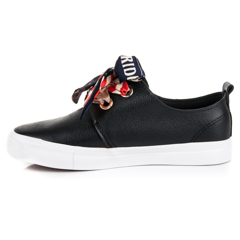 Les chaussures sont montées sur une plateforme confortable de 2 cm de hauteur, ce qui ajoute un caractère unique, et la couleur contrastée de la semelle les distingue des autres modèles du marché. Un accent intéressant est un large nœud en tissu, qui donne aux baskets un look moderne et coloré.