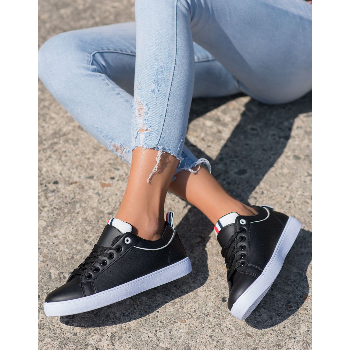 Détails: SHELOVET Baskets élégantes en cuir écologique noir