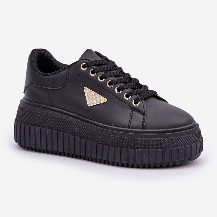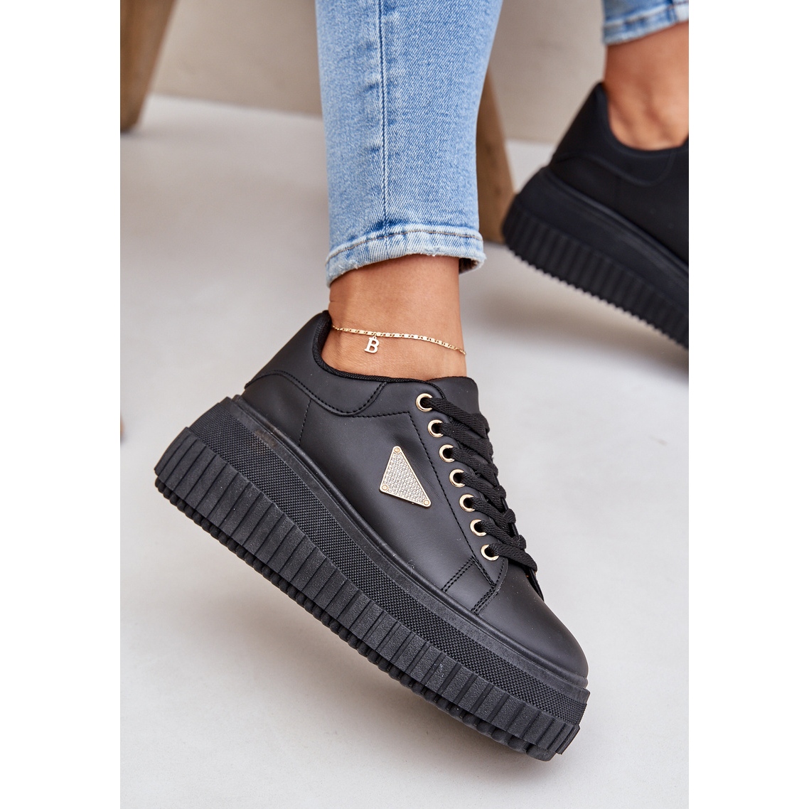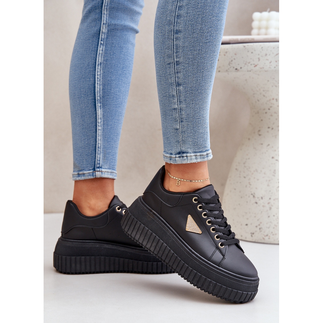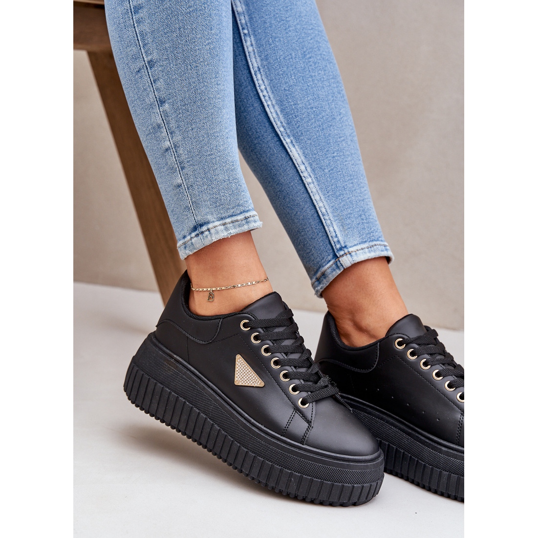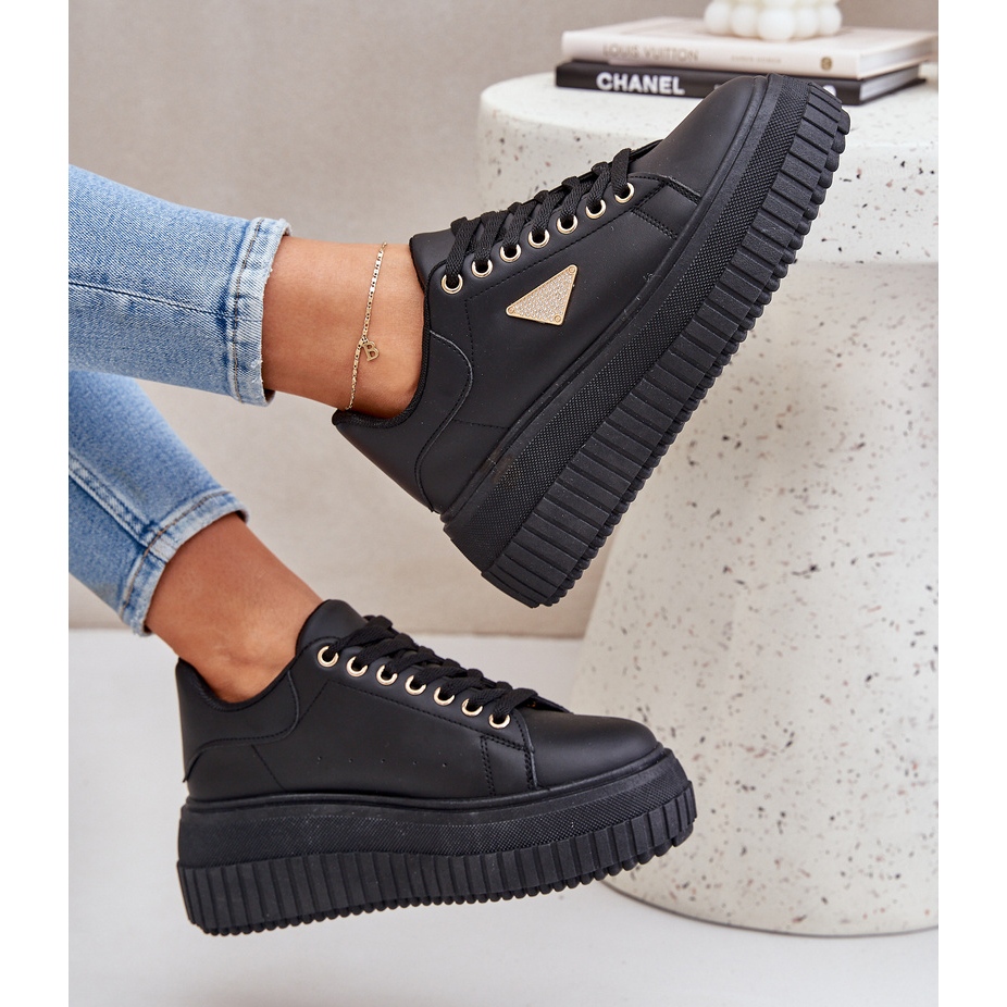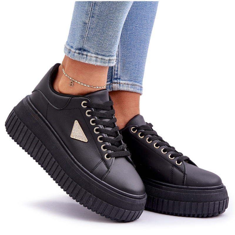 Détails: Baskets élégantes sur une plate-forme noire massive le noir