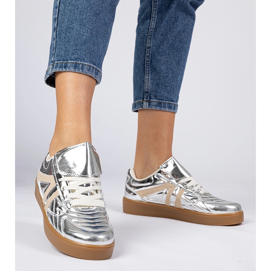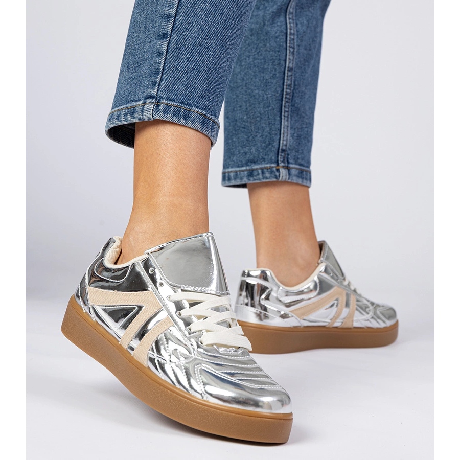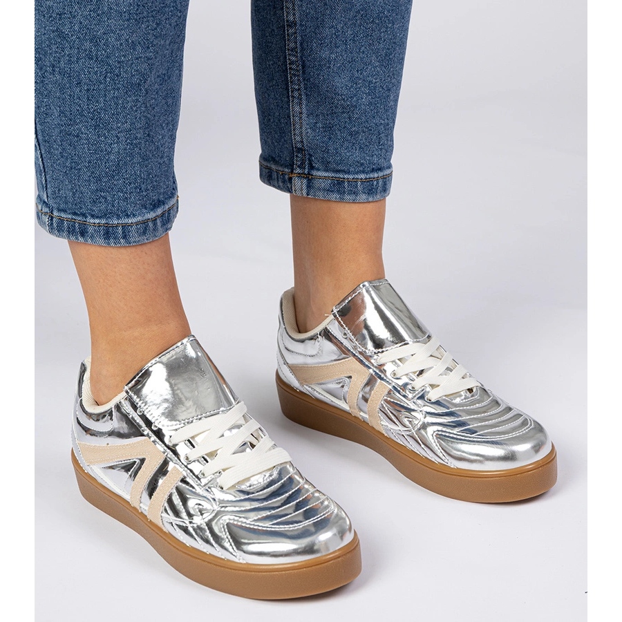 Découvrez les baskets en argent inhabituelles qui apporteront de la fraîcheur à votre garde-robe. Ces chaussures vernies combinent le design à la mode avec un haut niveau de confort. Leur finition métallique attirera certainement les yeux, ajoutant la splendeur de toute stylisation.