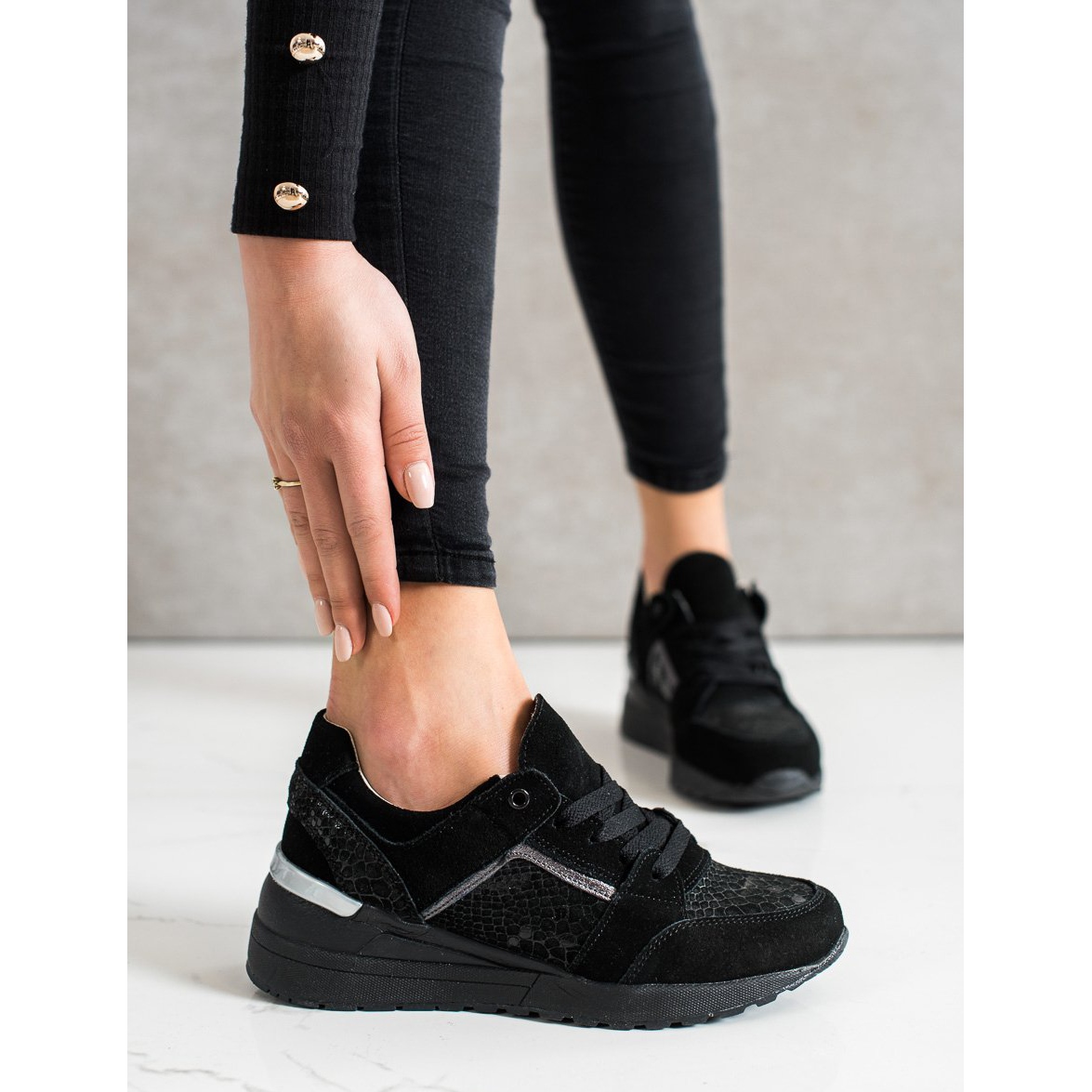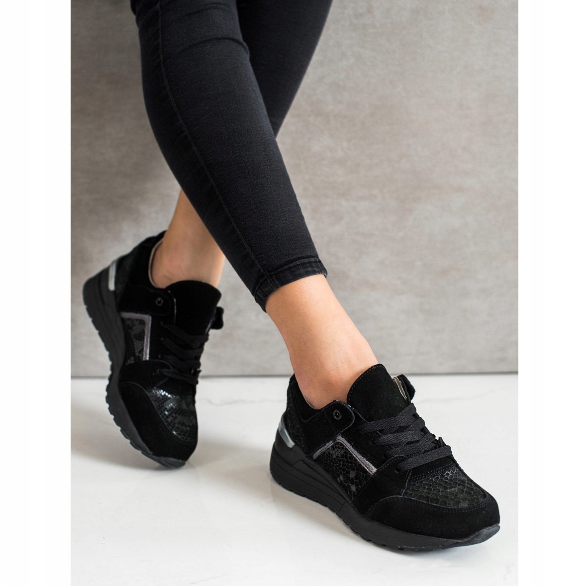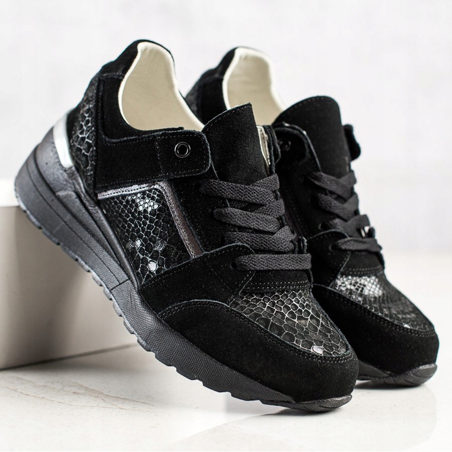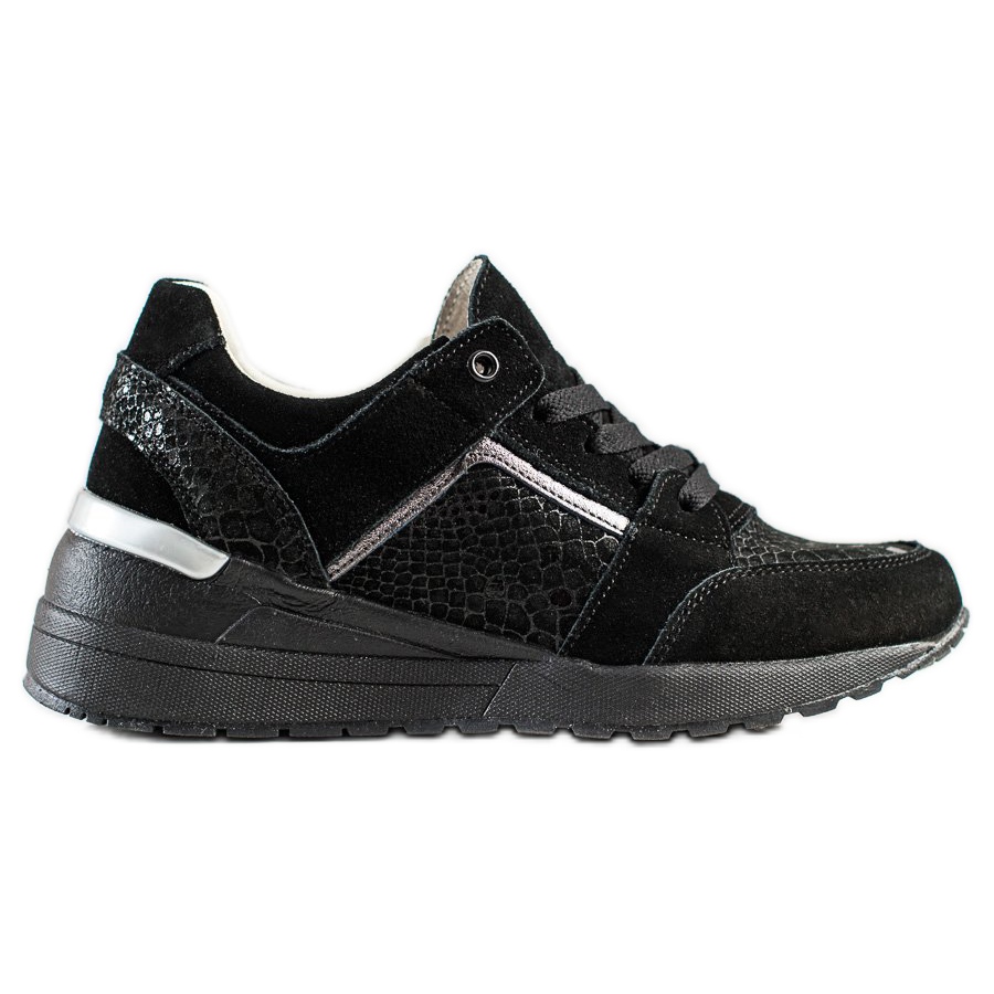 Fabriquées en cuir naturel de haute qualité, les baskets se caractérisent par une élégante teinte noire qui s'adapte parfaitement à n'importe quel style. Les détails décoratifs avec un motif animalier en relief confèrent aux chaussures un caractère unique, tandis que les inserts argentés à l'arrière leur confèrent un éclat subtil.