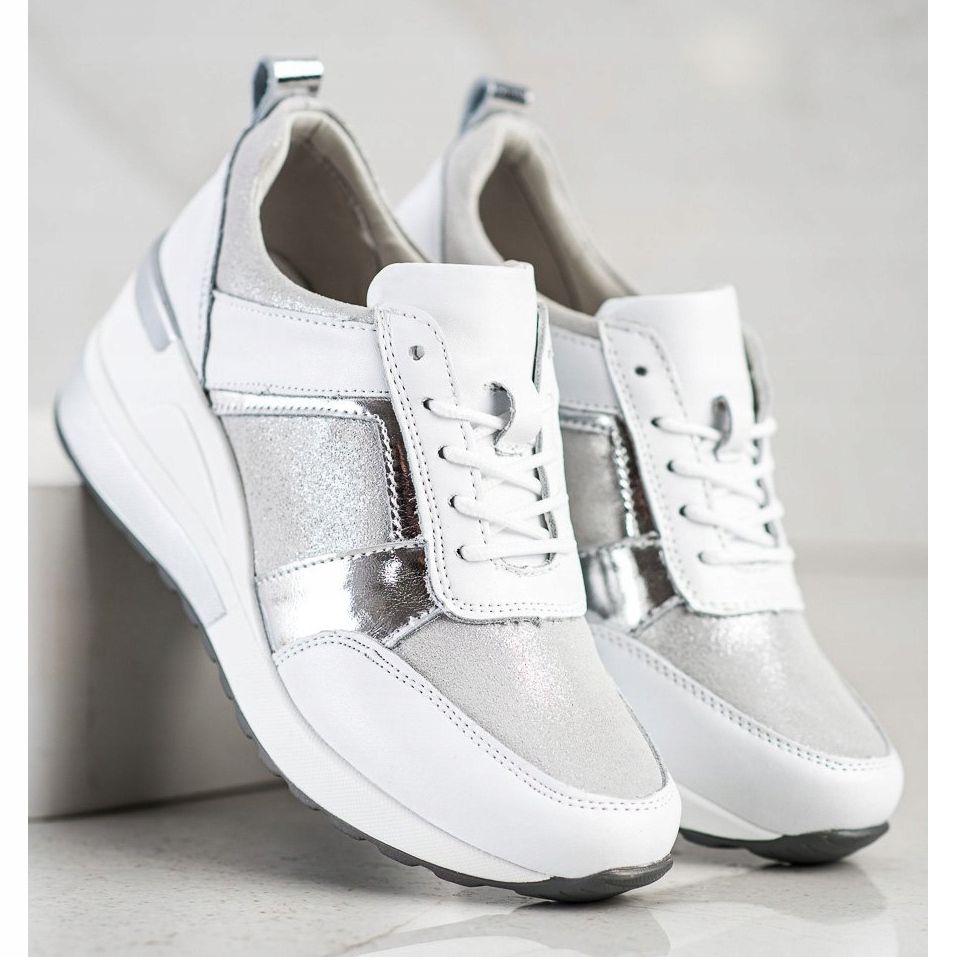 Vinceza Baskets en cuir à paillettes VINCEZA blanche argent