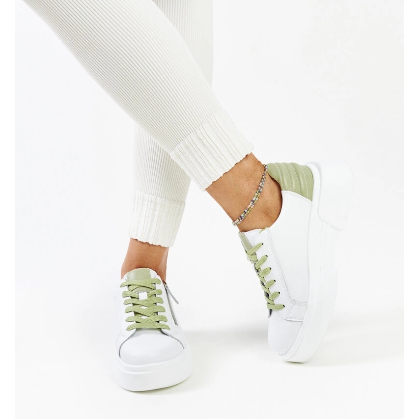 Détails: Baskets en cuir Atyaf blanches et vertes