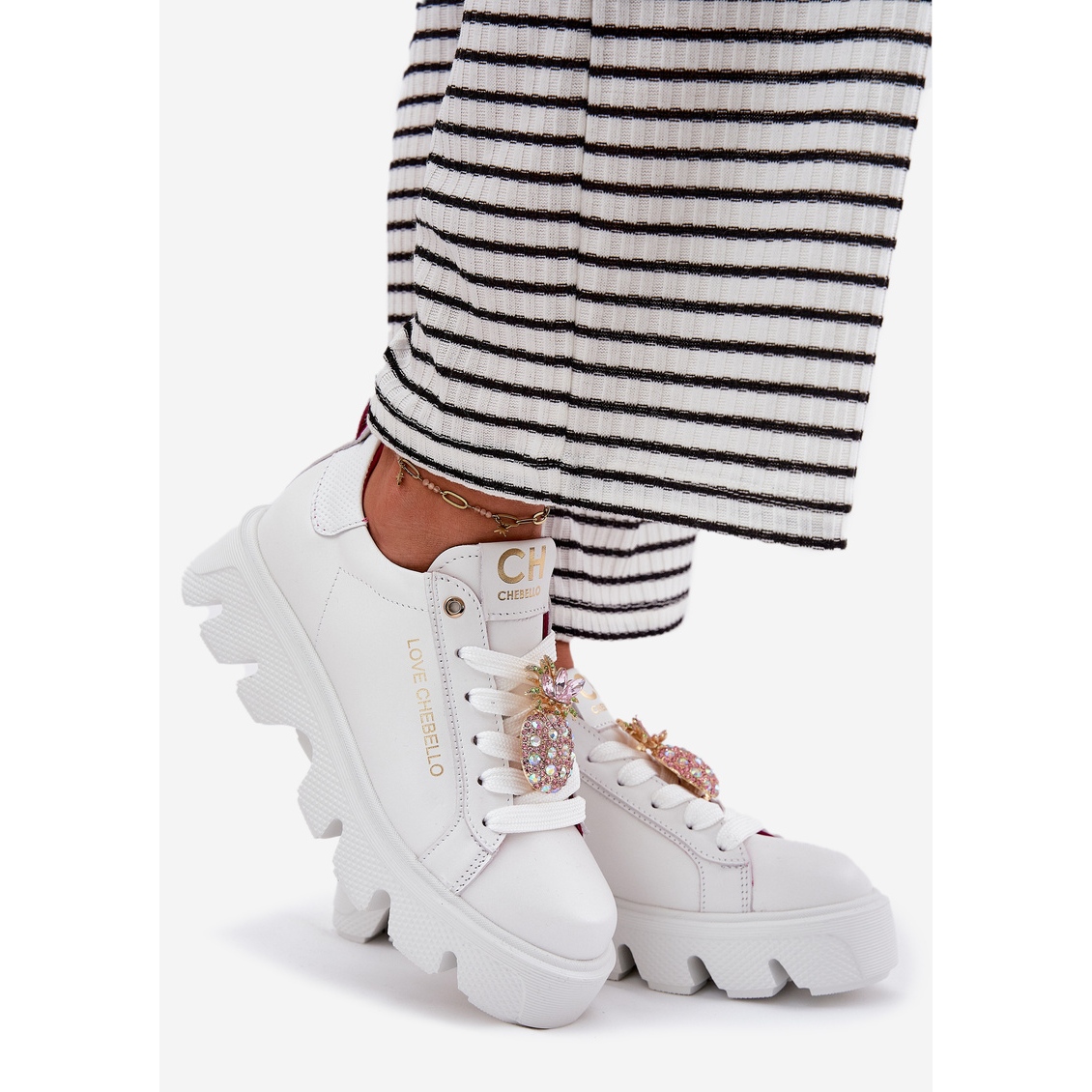 Détails: CheBello Baskets en cuir avec une broche décorative Porabello 4651 blanc blanche
