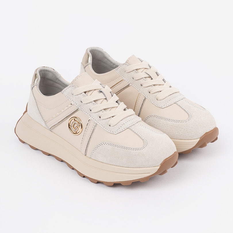 Découvrez l'élégance et le confort dans les baskets en cuir beige sur une semelle épaisse de la marque Goodin. Créée à partir du cuir naturel de la plus haute qualité, ces chaussures féminines élégantes combinent la conception et les fonctionnalités modernes, ce qui en fait le choix parfait pour les sorties quotidiennes et les jours actifs pleins de mouvement.