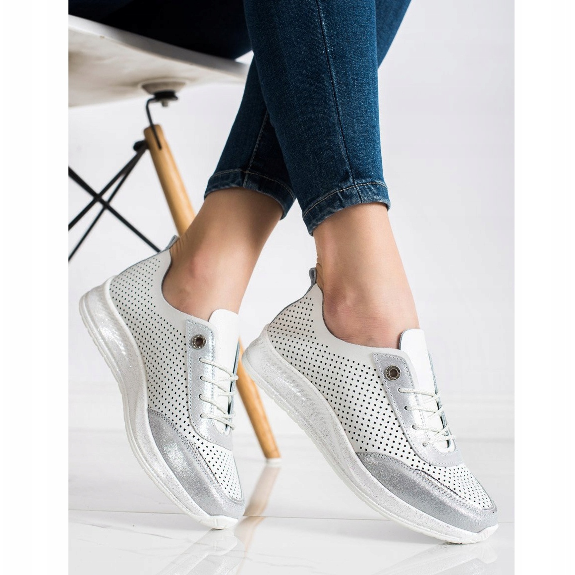 Nous vous présentons des baskets en cuir blanc et argenté du célèbre fabricant Goodin, qui s'adaptent parfaitement aux tendances du printemps et de l'été. Ces chaussures de sport uniques, conçues spécialement pour les femmes, allient design tendance et confort au quotidien.