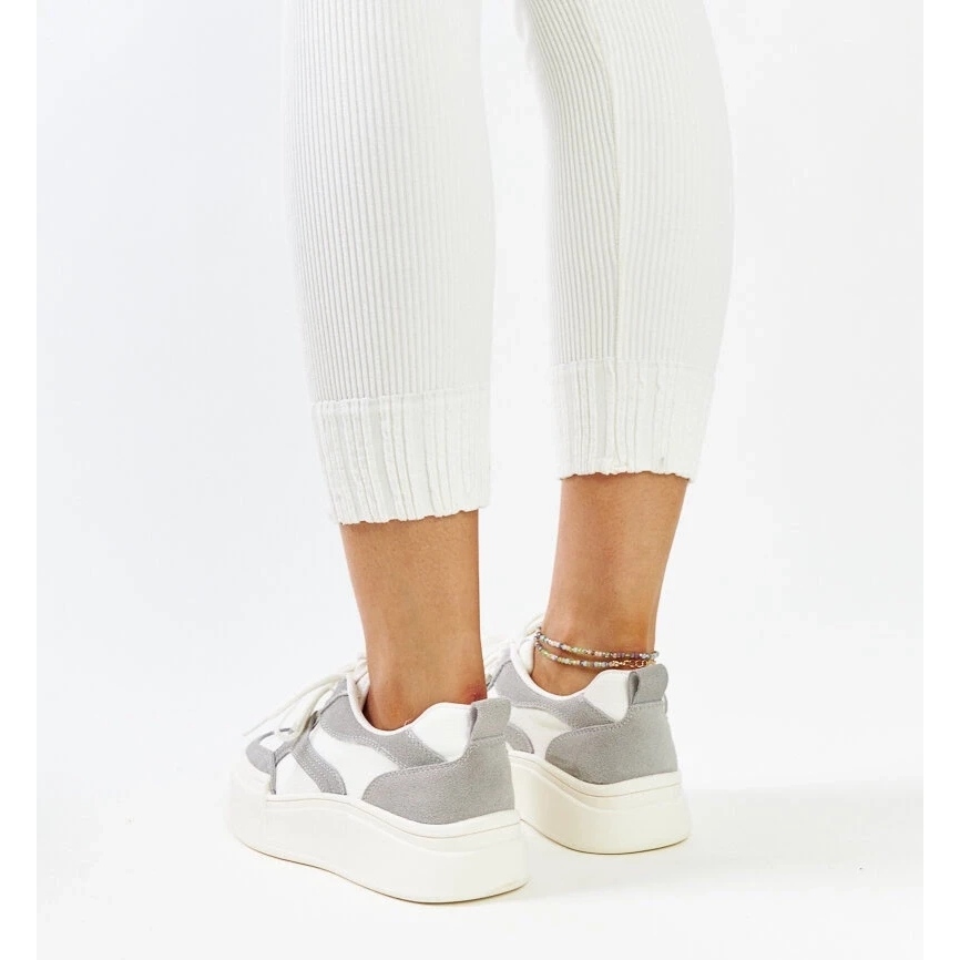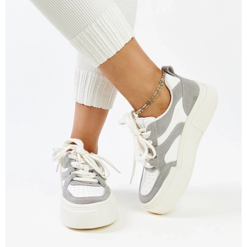 Détails: Baskets en cuir blanc gris sur une épaisse semelle de kawthar blanche