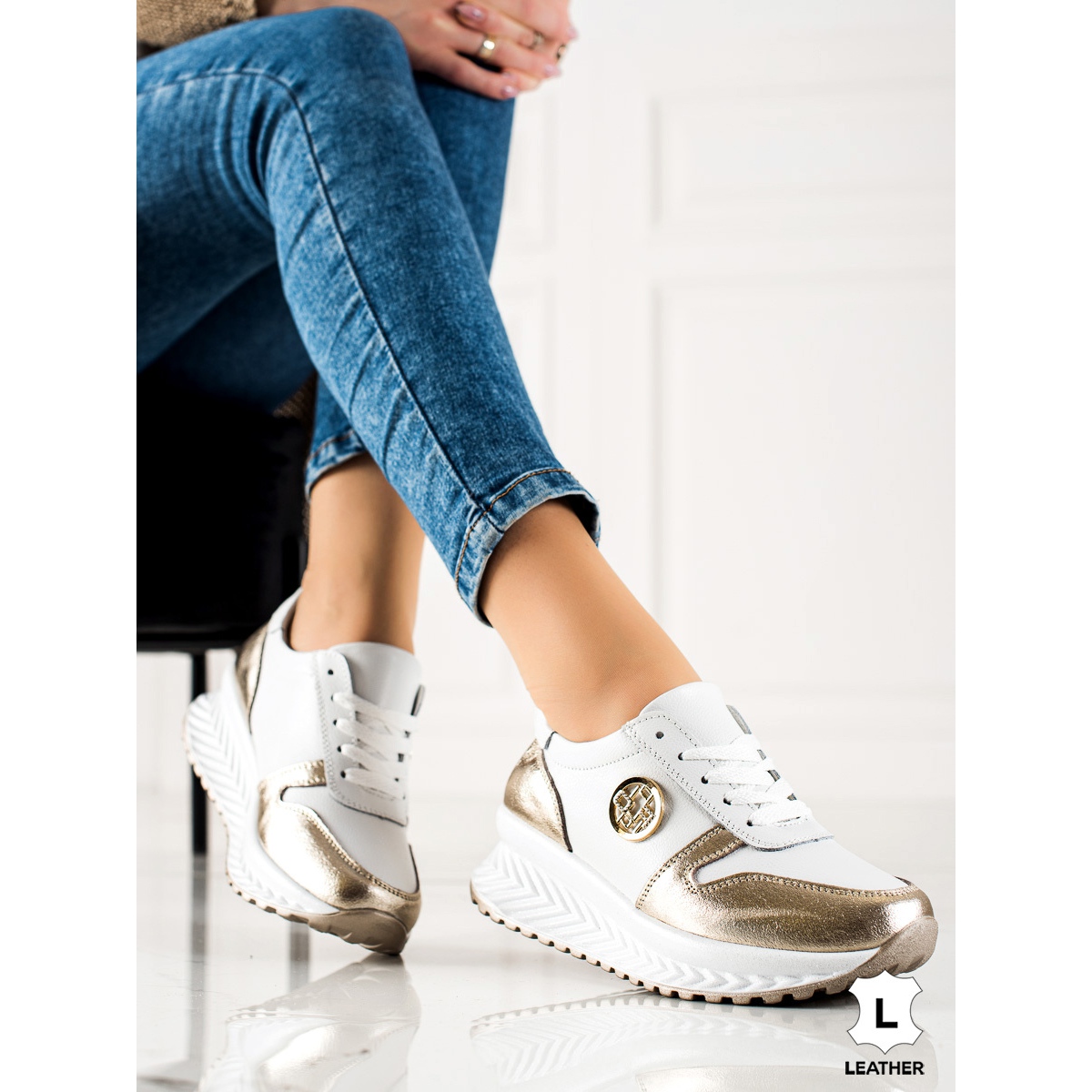 Nous vous présentons les baskets classiques en cuir de la marque Filippo, qui allient parfaitement confort et style. Ces élégantes chaussures pour femmes blanches avec des accents dorés accrocheurs sont un excellent choix pour un usage quotidien. Grâce au talon doux intégré et au bout rond, les porter est un pur plaisir.