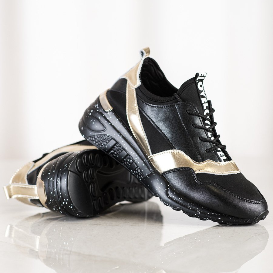 Détails: S. BARSKI Baskets en cuir de S.BARSKI le noir d'or