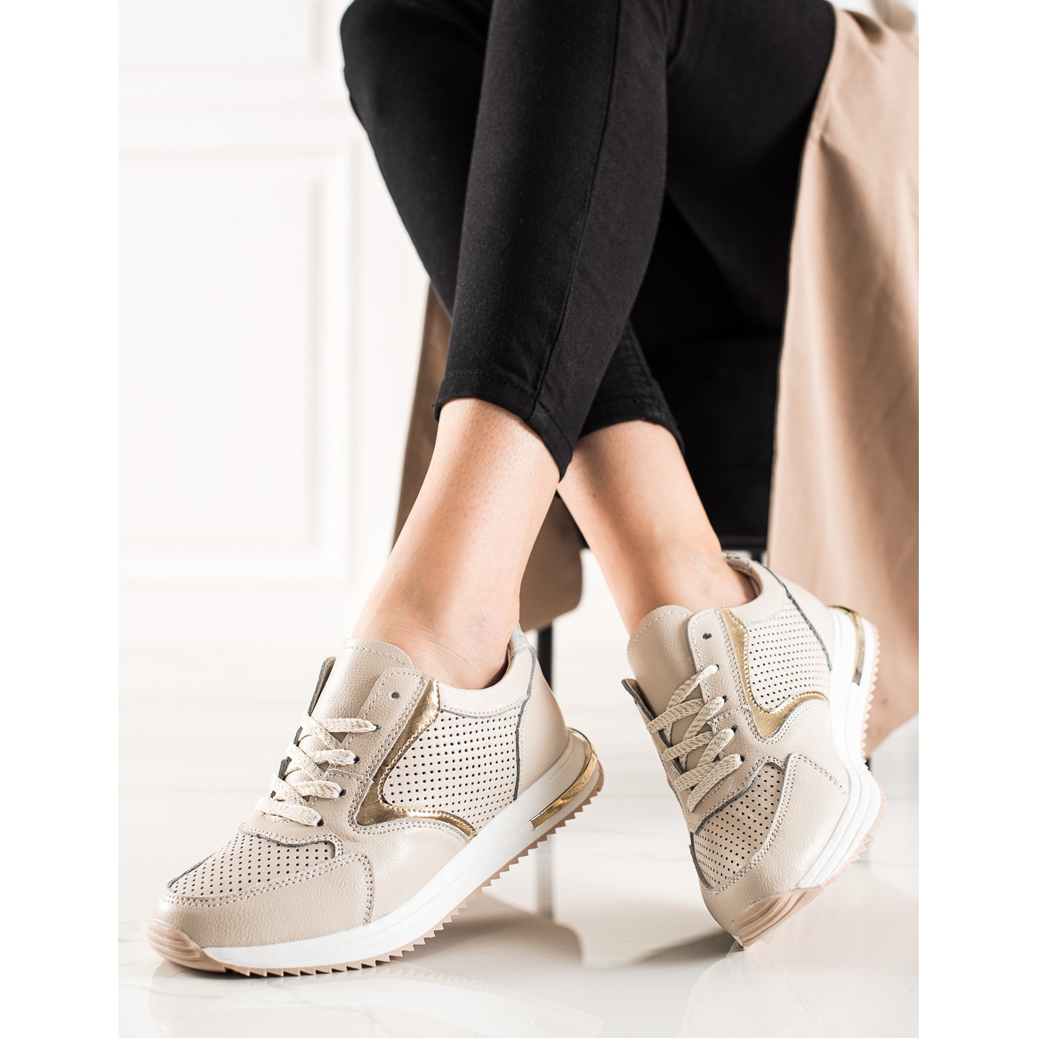 Détails: Goodin Baskets en cuir décontractées beige