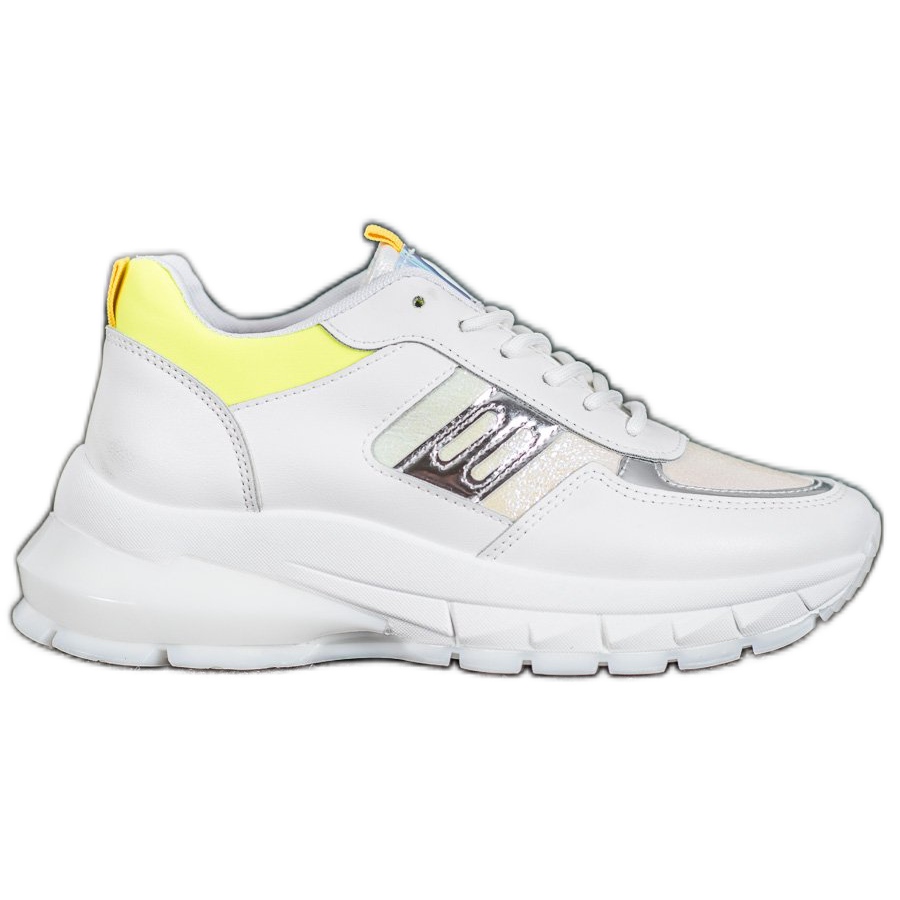 Détails: SHELOVET Baskets en cuir écologique à la mode blanc argent jaune