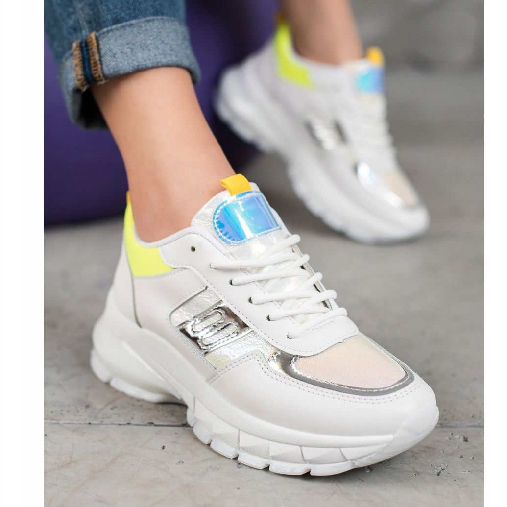 Découvrez un style extraordinaire avec les baskets SHELOVET à la mode qui allient élégance et confort. Ces chaussures blanches originales aux délicats accents jaunes et argentés sont un incontournable pour toute femme à la mode qui souhaite exprimer sa personnalité à travers le style.