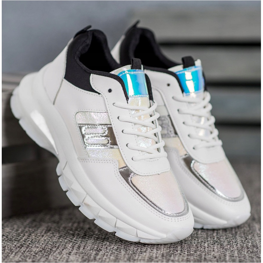 La surface holographique des baskets est non seulement extrêmement attrayante, mais reflète également parfaitement la lumière, ce qui fait de ces chaussures le choix parfait pour diverses occasions. Grâce au talon souple intégré, l'utilisation est confortable et la semelle en caoutchouc avec bande de roulement assure une excellente adhérence et un confort au quotidien.