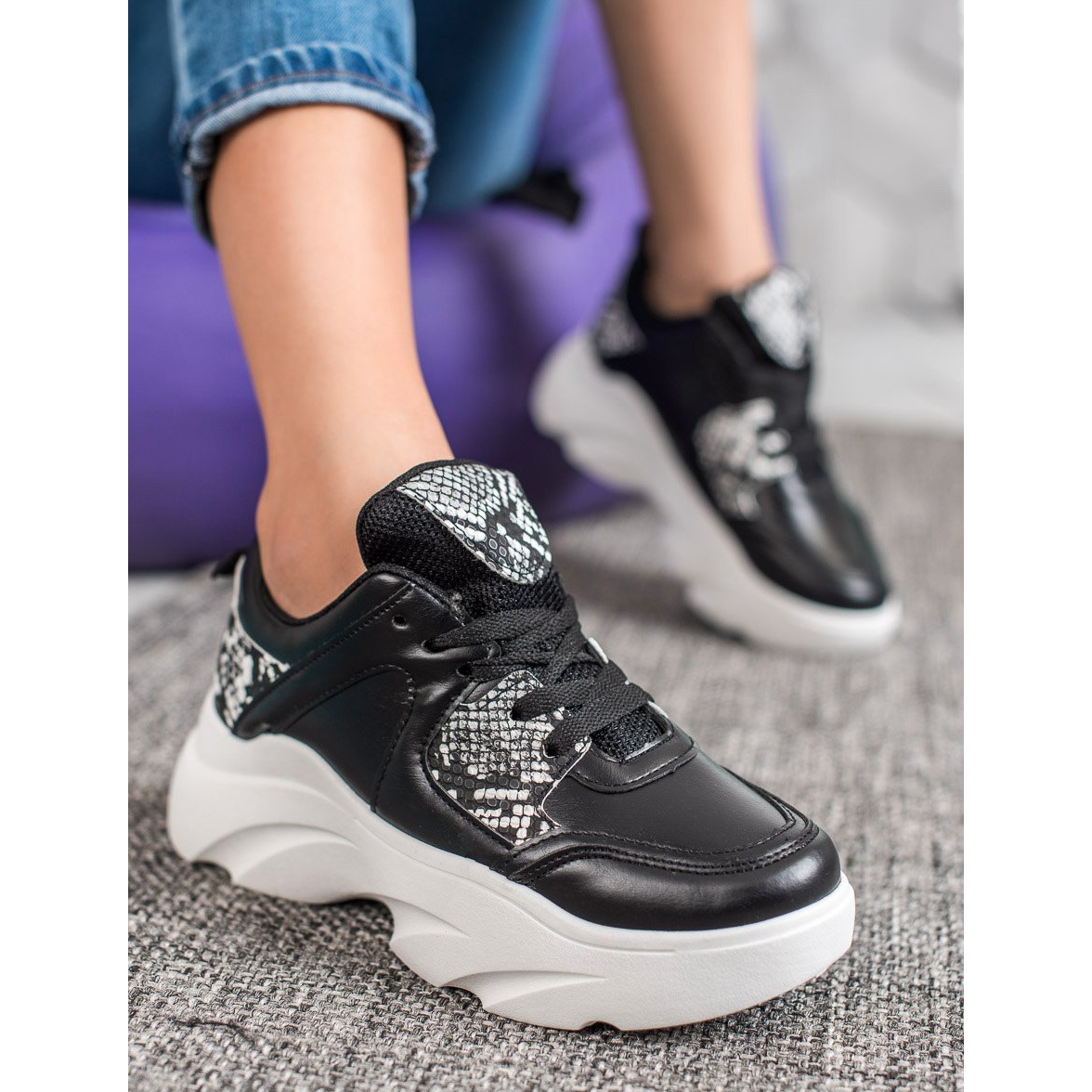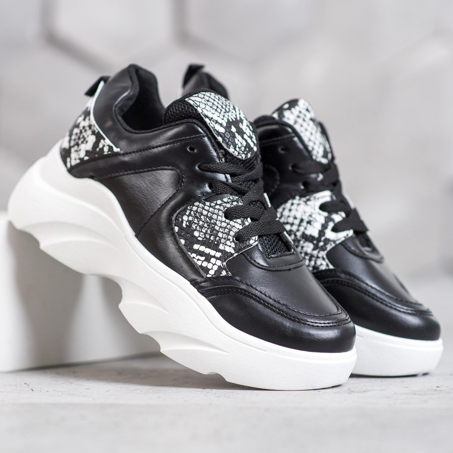 Les baskets pour femme Weide sont la combinaison parfaite entre mode et confort, qui s'intègre parfaitement dans les tendances actuelles. Ces chaussures de sport noires se distinguent par une plateforme massive de 5,5 cm de hauteur, qui leur confère un caractère unique et assure un confort de port. Les empiècements à motif peau de serpent leur confèrent de l'originalité et en font un ajout attrayant au style de tous les jours.
