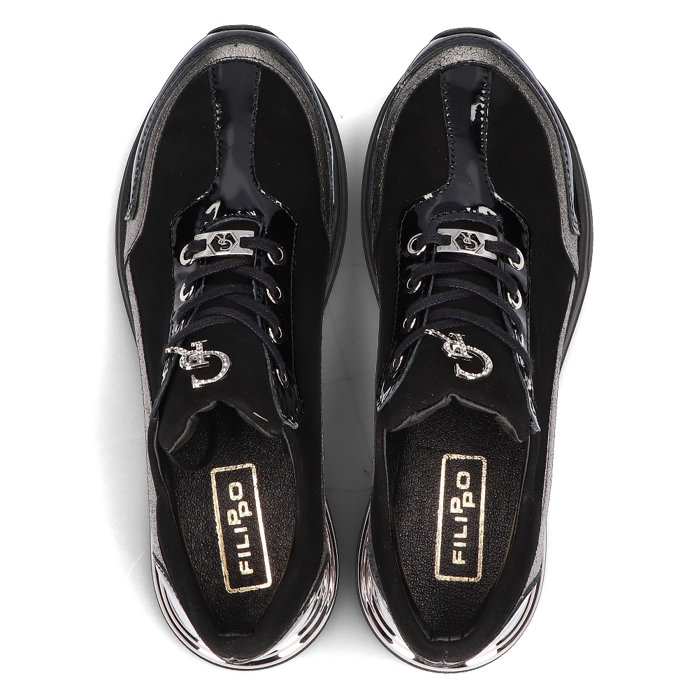 Les baskets Filippo 120 sont le choix parfait pour les sorties quotidiennes, les promenades ou le shopping. Grâce à la couleur noire universelle, vous pourrez facilement les assortir à différents styles, aussi bien décontractés que plus élégants. Choisissez des baskets qui allient design moderne et confort d'utilisation. Découvrez le monde du confort et du style avec la marque Filippo !