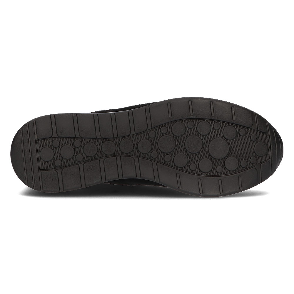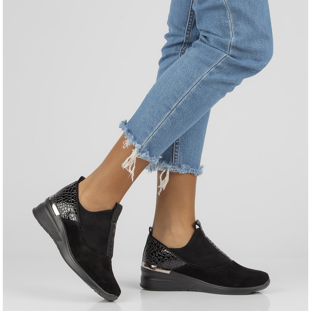 Les baskets se caractérisent par un bout rond et une fermeture à enfiler, ce qui les rend faciles à enfiler. L'intérieur de la chaussure est fini en cuir écologique et une semelle intérieure confortable en cuir naturel augmente encore le confort d'utilisation. Une semelle en plastique avec une hauteur de plateforme de 1,5 cm offre un amorti adéquat pendant la marche, et une cale de 5 cm de hauteur ajoute une légère augmentation.